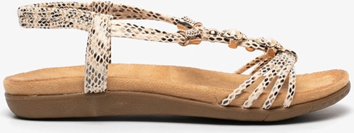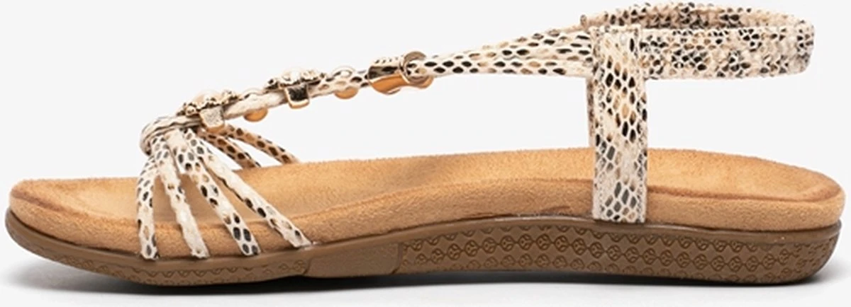 Beige sandalen voor dames van Blue Box. Gemaakt van imitatieleer, een binnenwerk van imitatieleer en een stevige profielzool. De sandalen hebben een elastische hielbandje en vast voetbed van textiel. Deze bevat memory foam voor optimaal comfort. De sandalen hebben goudkleurige kraaltjes op het bovenwerk. De stevige buitenzool biedt grip en demping.