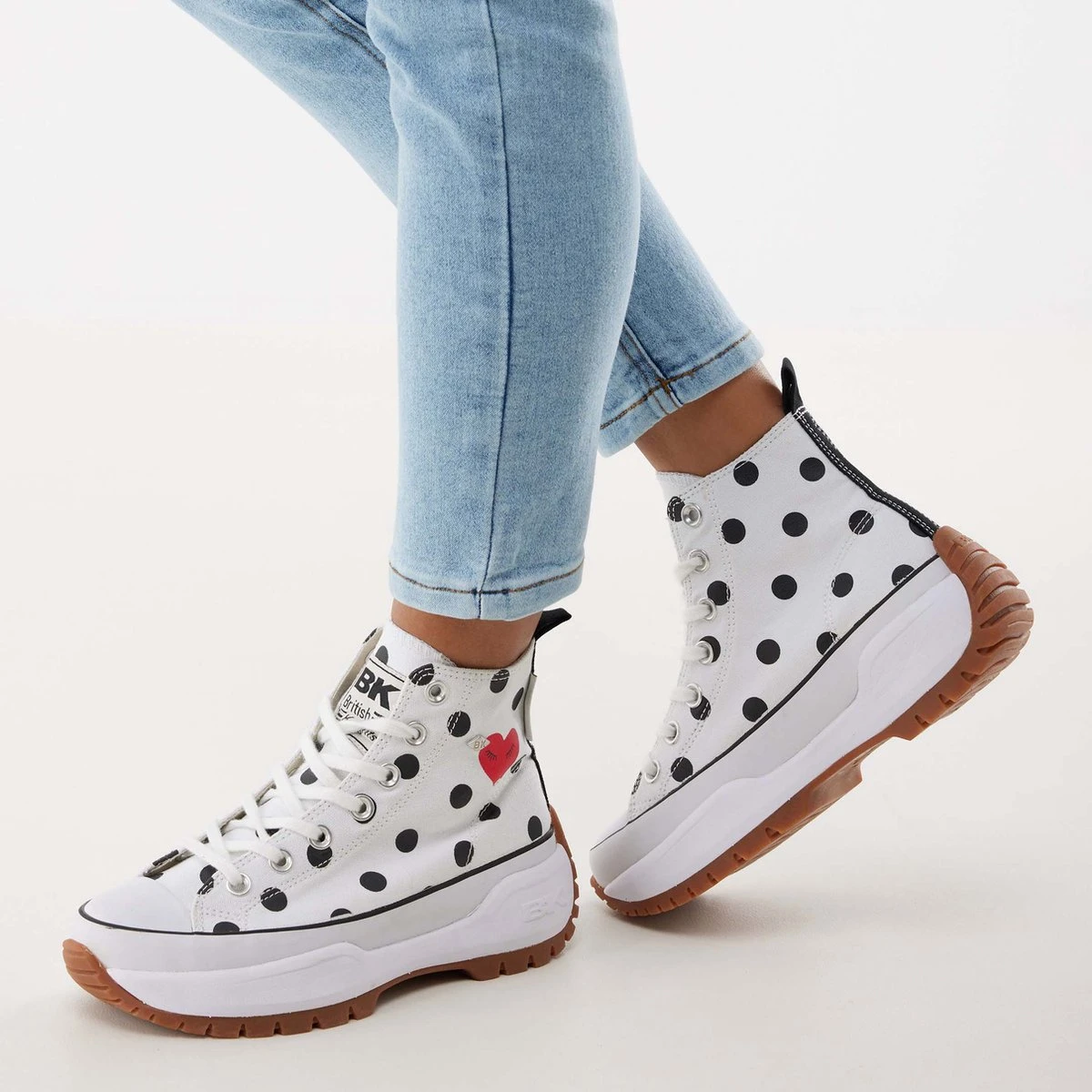British Knights KAYA MID FLY Dames Sneakers Hoog – Wit Stippen – Maat 38