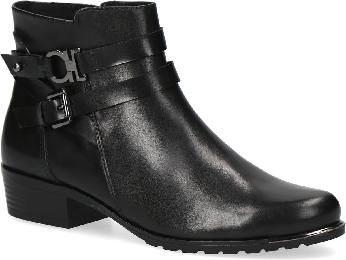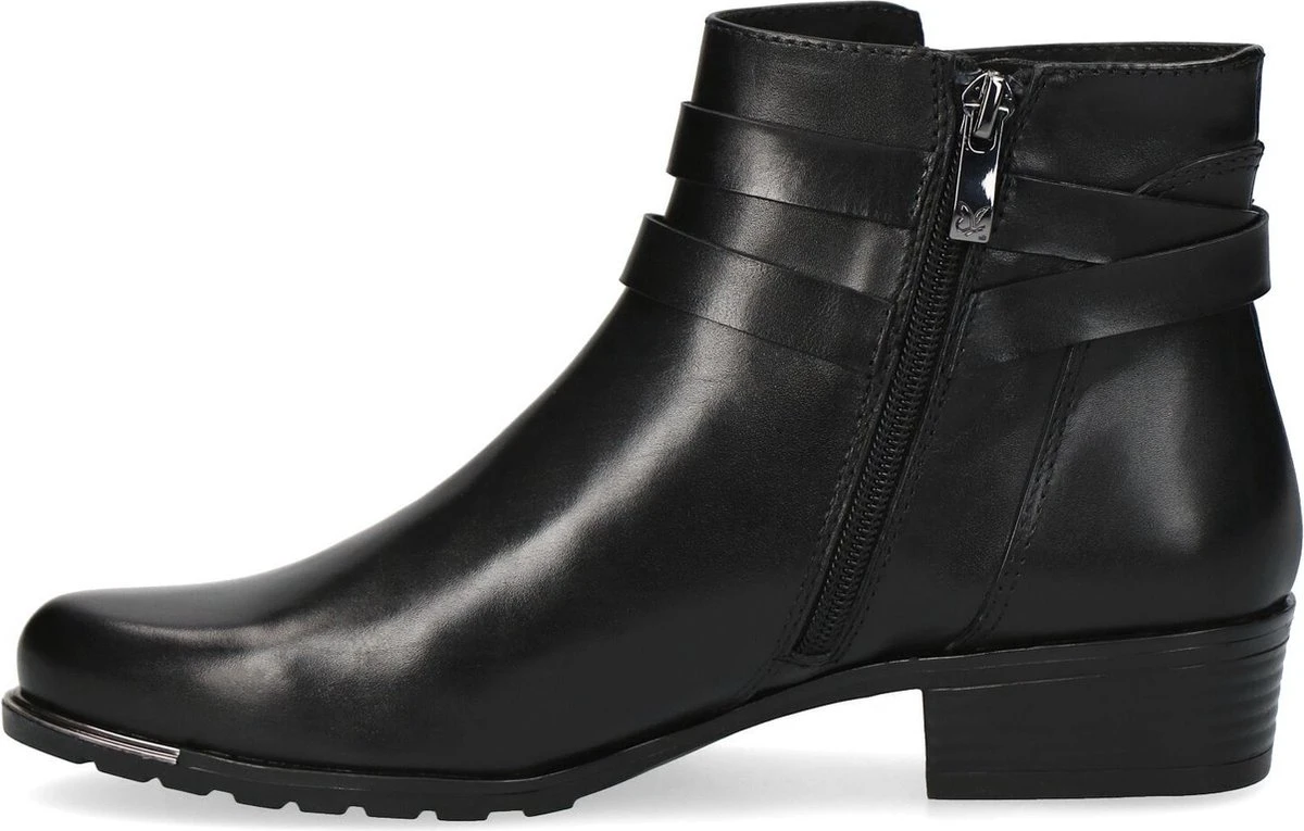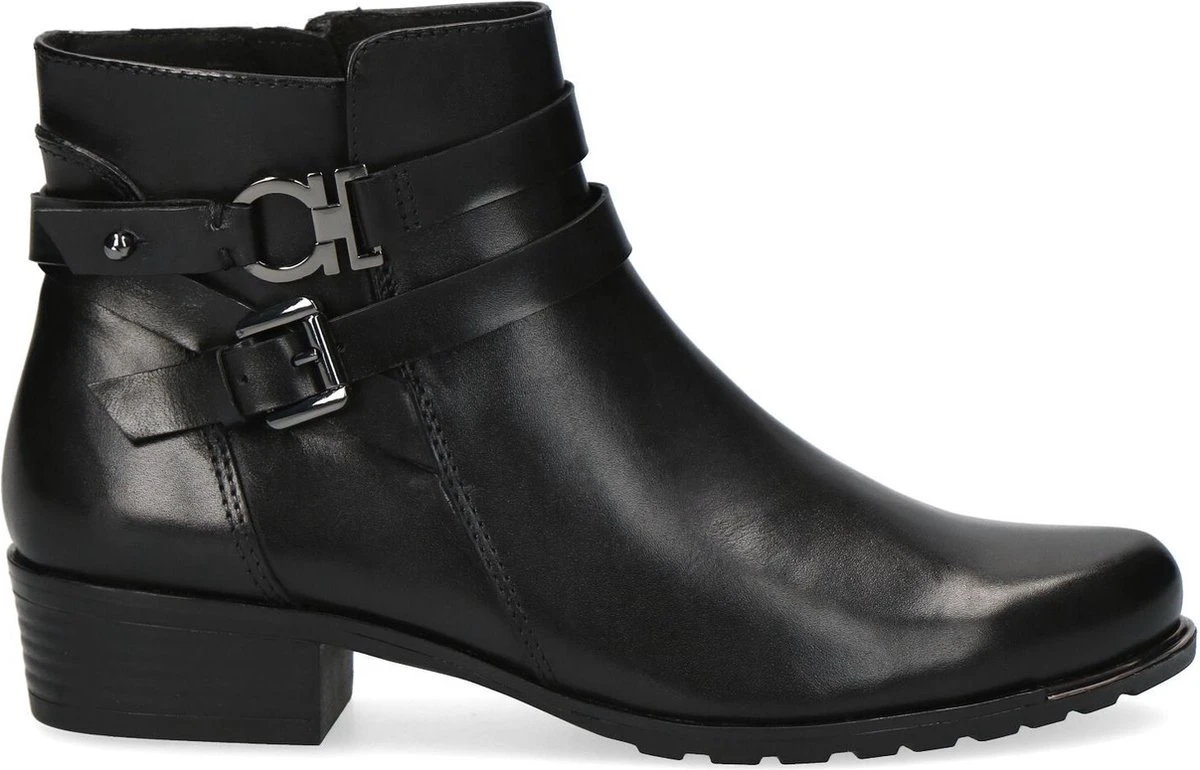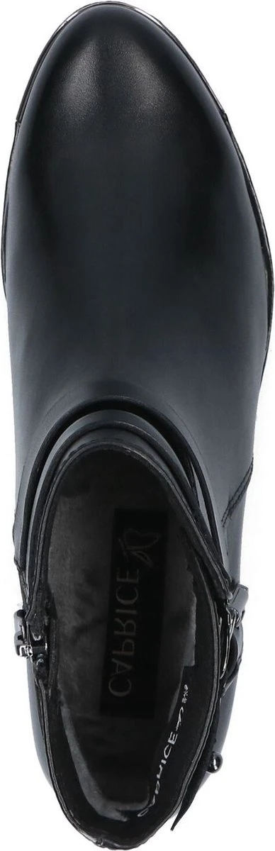 Deze platte enkellaars van het merk Caprice heeft een bovenwerk van echt leer. De 32 mm hoge blokhak in combinatie met de puntige teen maakt elke outfit compleet. Het voetbed is afneembaar.