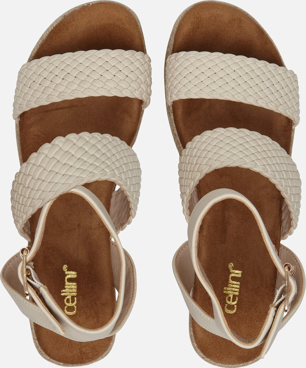 Deze Cellini sandalen met vlechtzool in de kleur beige zijn synthetisch. De voering is ook synthetisch en de comfortabele binnenzool is van leer. De sandalen hebben een plateauzool en een gespsluiting. De zool is gemaakt van rubber en heeft een dikte van 4 centimeter.