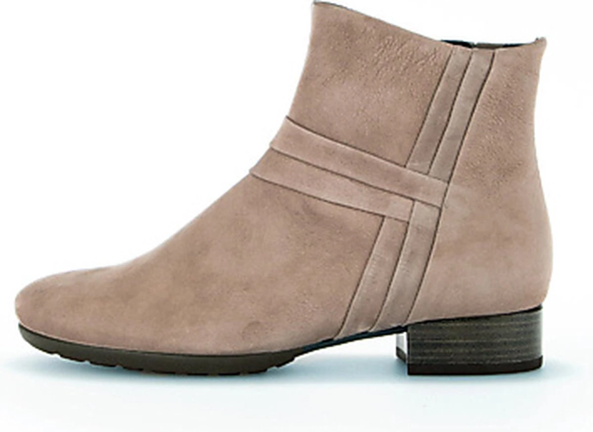 Taupe Gabor enkellaarzen in mooi nubuck, voor een geklede en luxe stijl. Het materiaal vormt zich goed naar je voet, voor een comfortabel paar laarsjes. De verende zool en de comfortabele extra wijdte bij de tenen, bal en wreef van de voet maken de Gabor enkellaarzen in taupe goed geschikt om lekker lang op te blijven lopen.