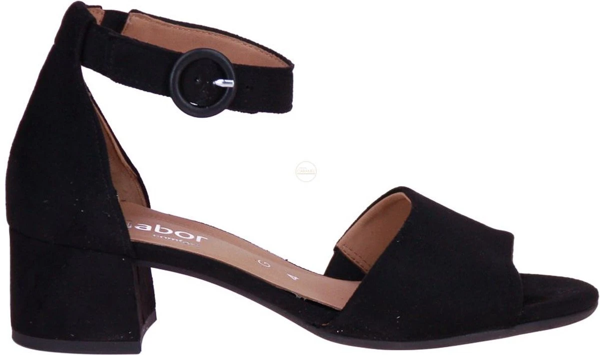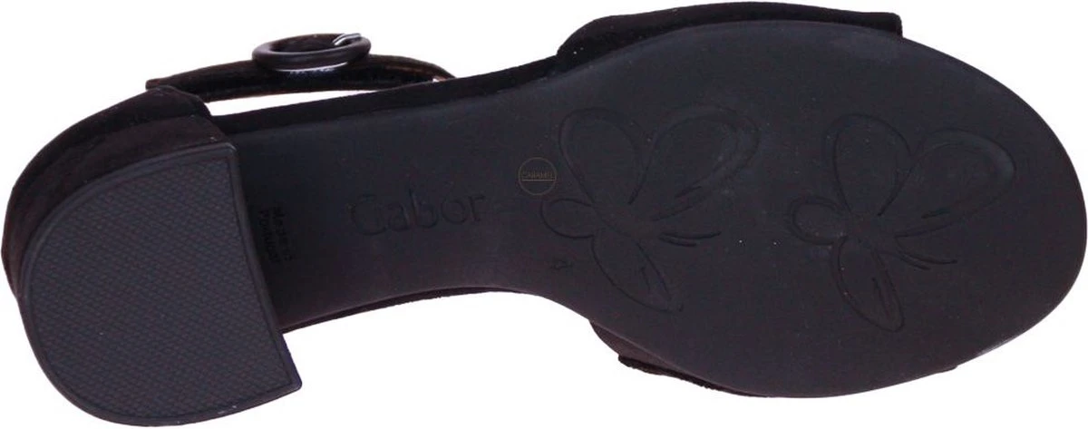 Zwart suède damessandaal van het merk Gabor. Dit model heeft een G-leest, ideaal voor bredere voeten.