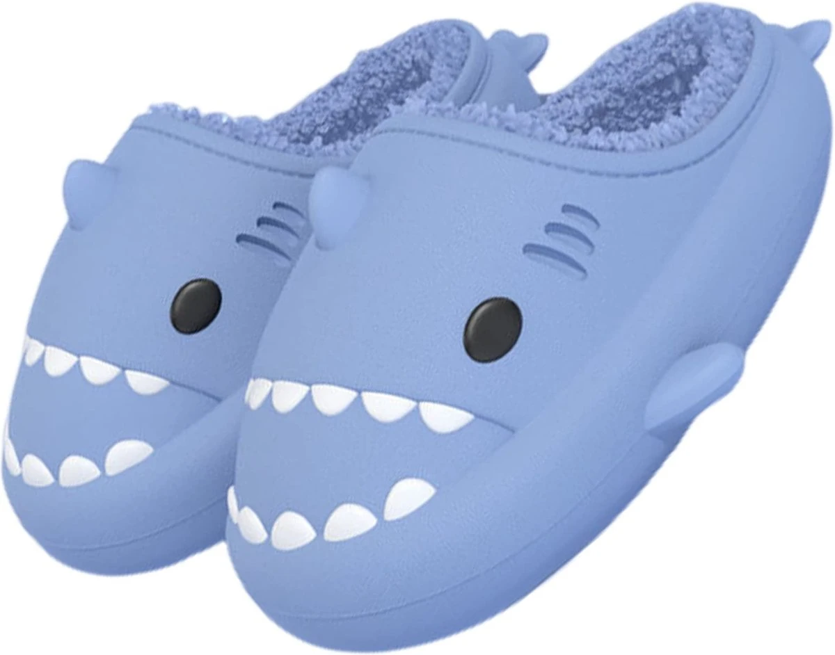 Geweo Home Sloffen Dames Heren – Haai Pantoffels – Antislip Pluche Warme Fleece Open Sloffen – Comfortabel Traagschuim – Blauw – Maat 4041