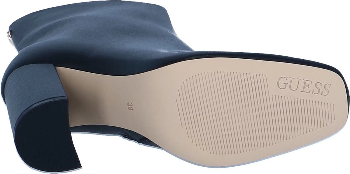 Het bekende, Amerikaanse merk Guess ontstond in 1981 en staat symbool voor een luxueuze, jeugdige, sexy en avontuurlijke levensstijl. Het merk maakt trendy items die jouw outfit de juiste touch geven. Met deze enkellaars Beaker zit je dan ook zeker goed! Dit model is uitgevoerd in zwart leatherlook met een carréneus en een goudkleurig merkembleem op de achterkant. Je trekt de laarsjes snel aan met de handige ritssluiting die afgewerkt is met merkreliëf. De voering is van suèdelook en de laars heeft een vast, leren voetbed. Door de blokhak van 9,5 centimeter heeft de schoen een elegante uitstraling en met een schachthoogte van 15,5 centimeter (gemeten bij maat 37) combineer je dit item eindeloos. Draag ‘m bijvoorbeeld onder een jeans, jurk of rok: het kan allemaal!