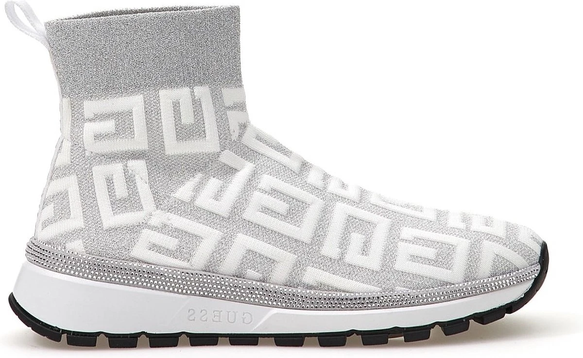 Mooie lage dames sneaker gemaakt van zachte stof uit de nieuwe collectie van Guess. De schoen heeft een mooie witte zool en is zilver en wit van kleur.