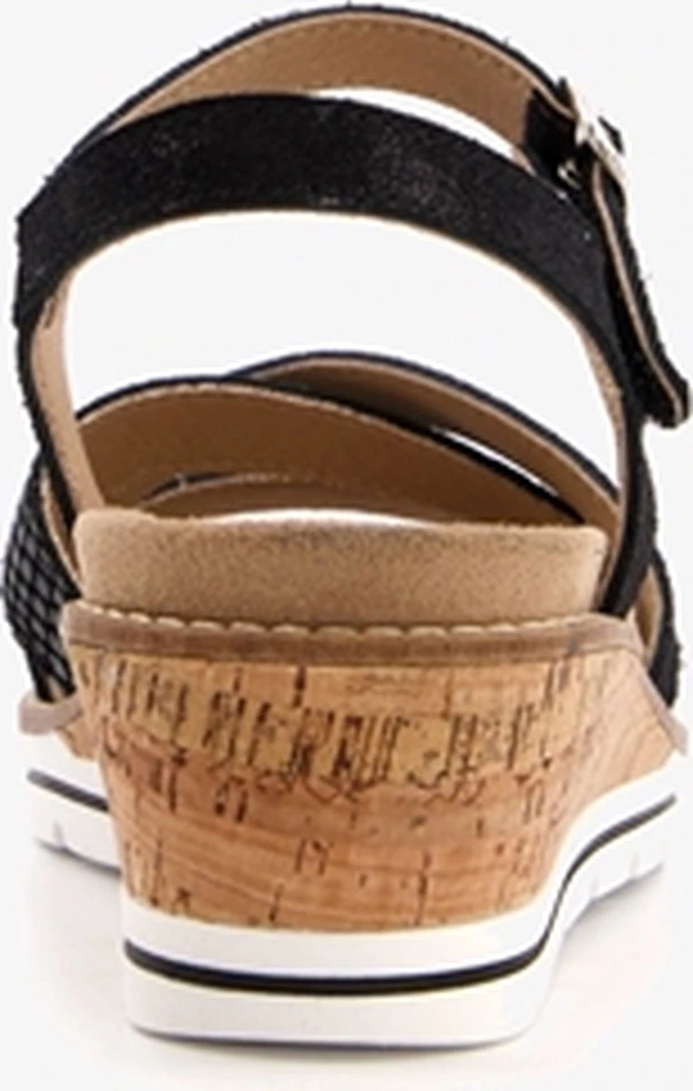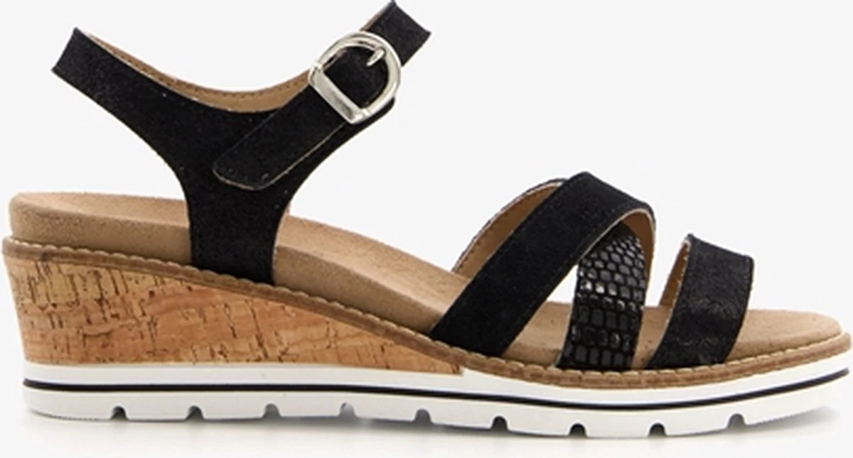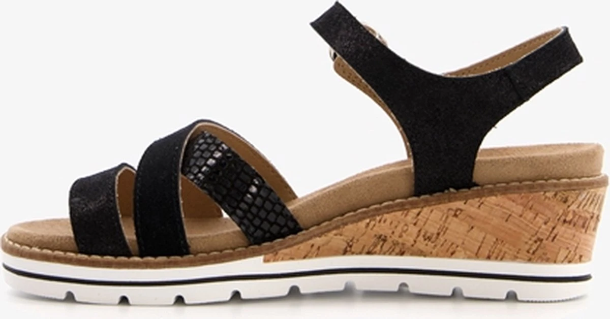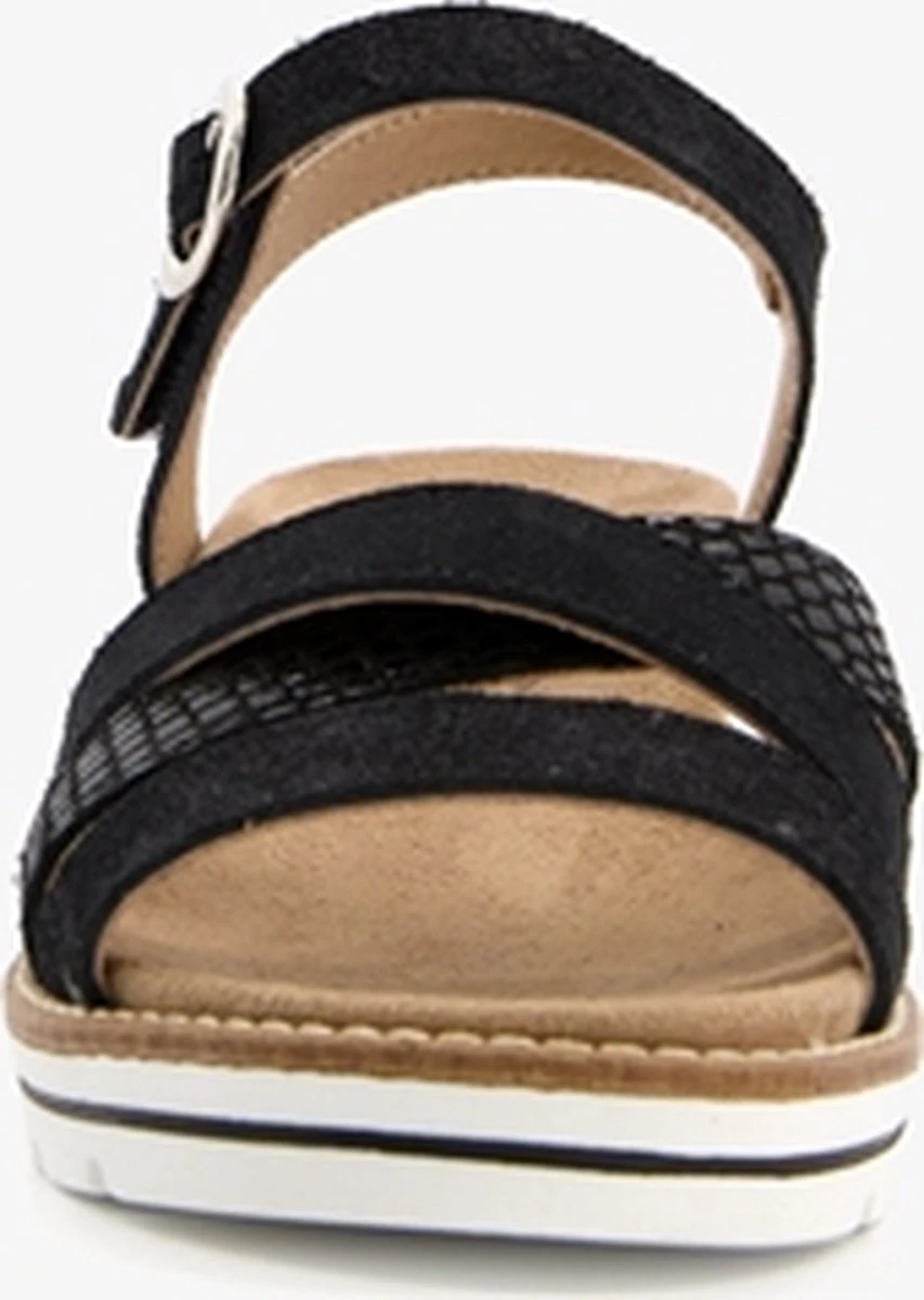 Zwarte sandalen voor dames van Hush Puppies. Gemaakt van leer, een binnenwerk van imitatieleer en een stevige profielzool. De sandalen hebben een wreefbandje met een gesp en cross-over bandjes over de tenen en hiel. Het comfortabele voetbed is gemaakt van textiel. Deze is uitneembaar zodat eigen zooltjes in de sandalen gedragen kunnen worden. De sandalen hebben een blokhak van circa 5 cm.