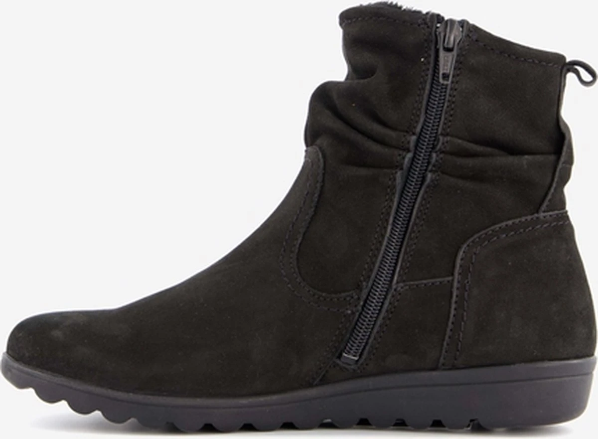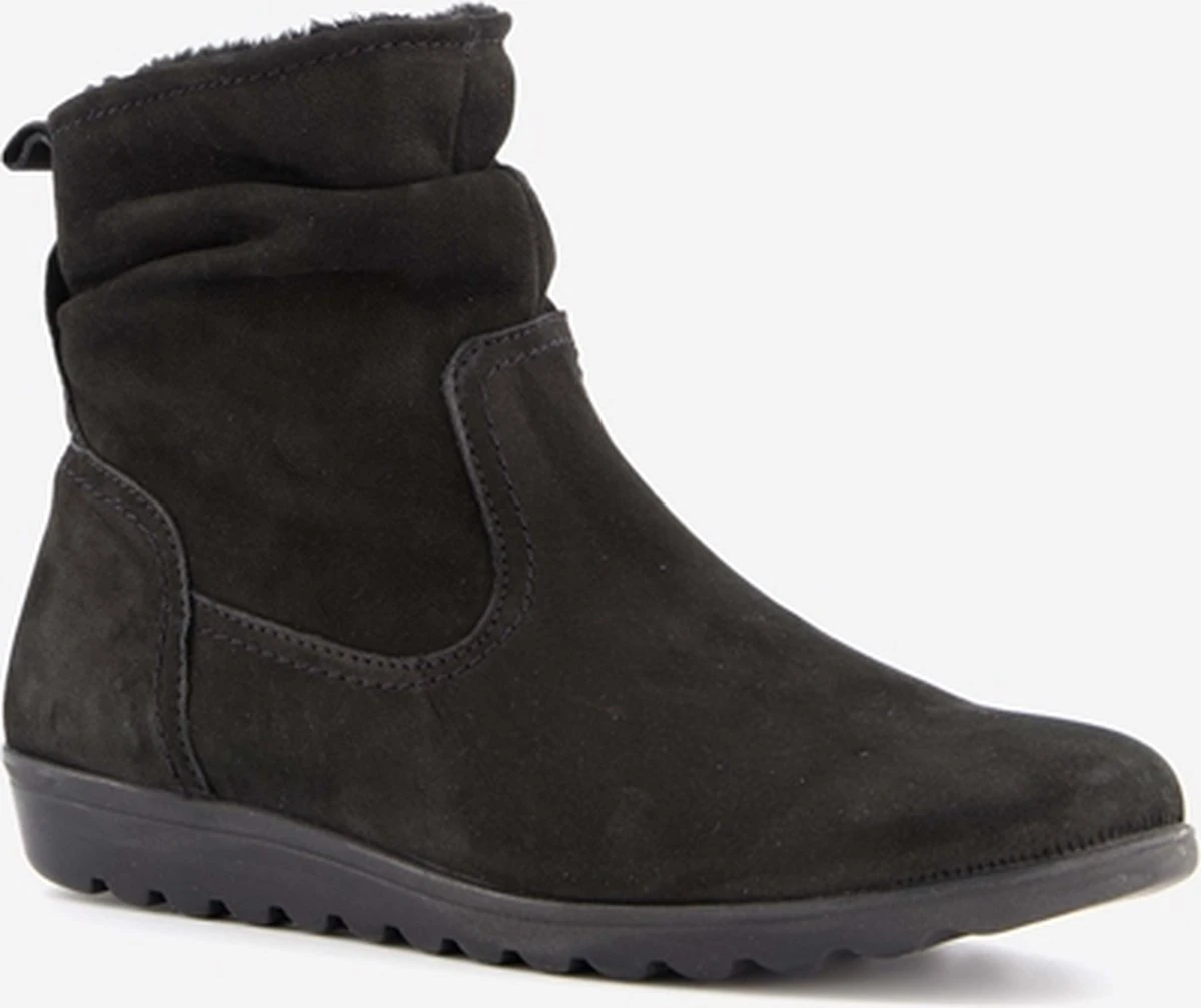 Zwarte, gevoerde enkellaarsjes van Hush Puppies. Gemaakt van suède, een binnenwerk van textiel en een stevige profielzool. De laarsjes hebben een ritssluiting aan de binnenzijde en een hiellusje voor een makkelijke instap. Het comfortabele voetbed is gemaakt van textiel. Deze is uitneembaar zodat het mogelijk is om je eigen zooltjes in de schoenen te dragen. De enkellaarsjes van Hush Puppies hebben een zachte, warme voering en een rubberen zool. De schachthoogte van deze laarsjes is 13 cm.