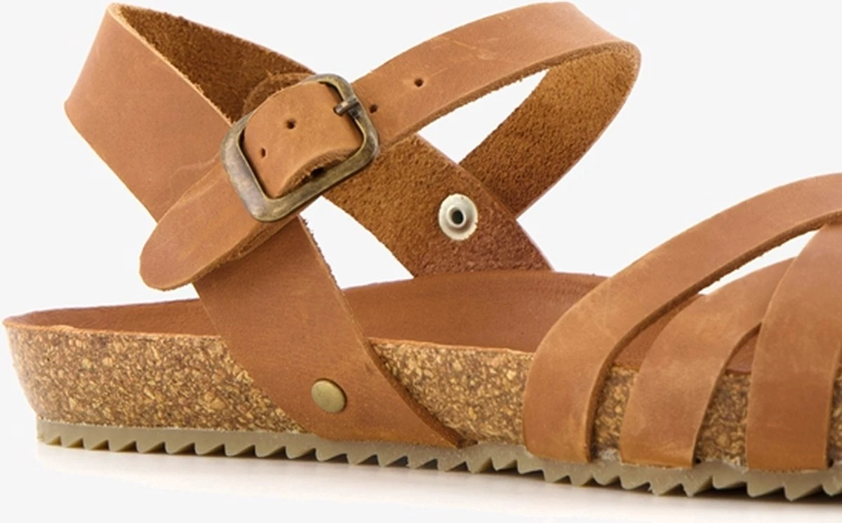 Cognac bruine bio sandalen voor dames van Hush Puppies. Gemaakt van leer, een binnenwerk van leer en een stevige profielzool. De sandalen hebben een wreefbandje met gespsluiting en bandjes om de tenen en hiel voor een makkelijke instap. Het comfortabele voetbed is gemaakt van leer. Deze is niet uitneembaar. De bio sandalen van Hush Puppies hebben een flexibele zool die grip en demping biedt.