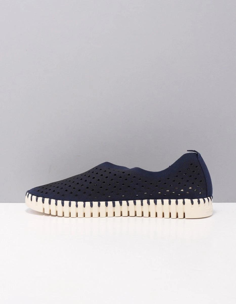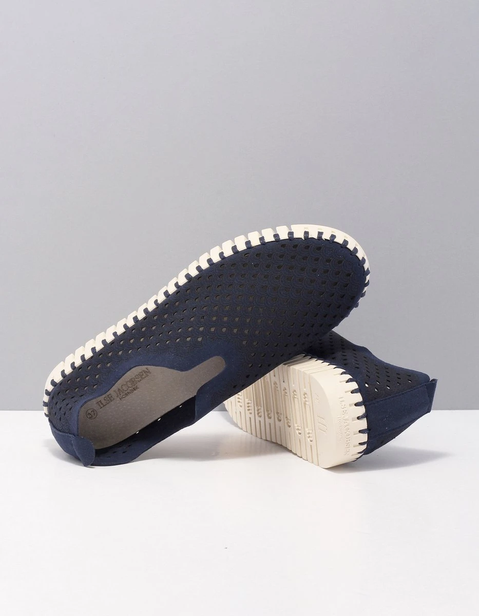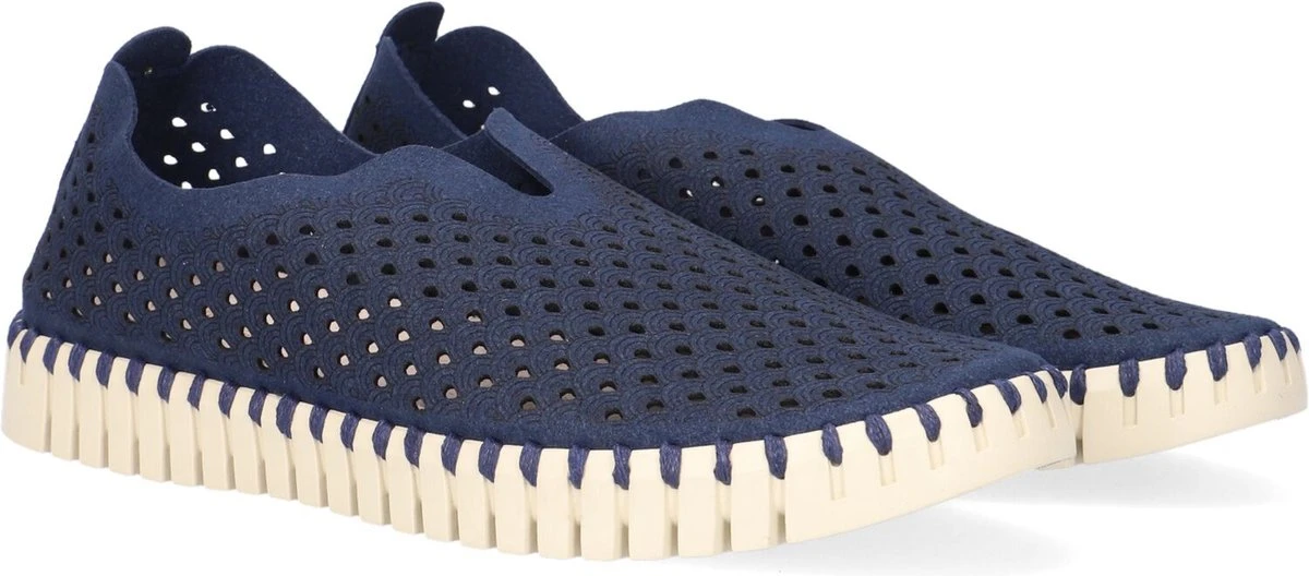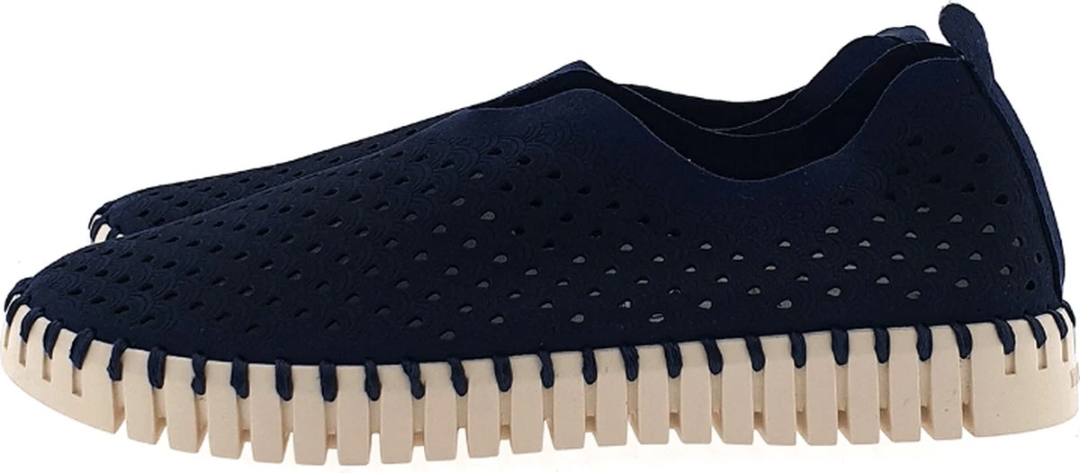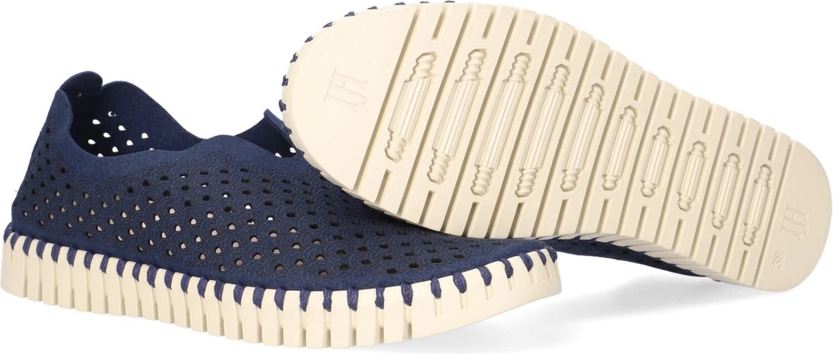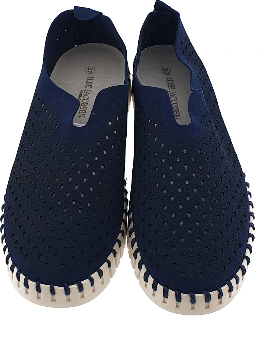 Of je nou naar het strand gaat of een dagje de stad doorkruist, met deze toffe blauwe instapper Tulip3275 van het merk Ilse Jacobsen ben je klaar voor al jouw avonturen! Dit Deense design is handgemaakt van ademend en sneldrogend textiel (100% microvezel) met een opengewerkt scHUBbendessin. De zool van off-white rubber is lichtgewicht en voelt soepel en zacht aan. De schoen is ongevoerd voor extra ventilatie tijdens warme zomerdagen en de stevige, uitneembare binnenzool van leer geeft veel support. Een casual en comfortabel model met een vernieuwende look!