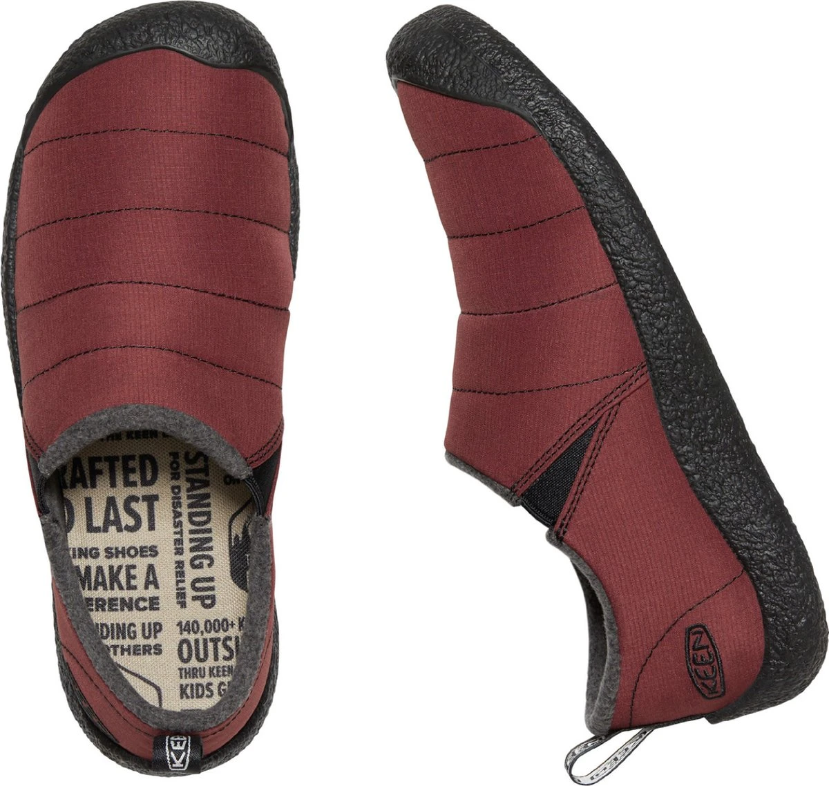 Deze Howser sloffen van KEEN houden je voeten aangenaam warm dankzij de gewatteerde upper, gevoerd met microfleece. Voor het bovenmateriaal is er gebruik gemaakt van gerecyclede PET-flessen. Een elastiek inzet zorgt voor een gemakkelijke instap van de verder ranke pantoffel. Keen’s Eco Anti-odour zorgt voor een natuurlijke geurneutralisatie. De rubberen loopzool maakt de Howser tevens geschikt voor gebruik buiten.