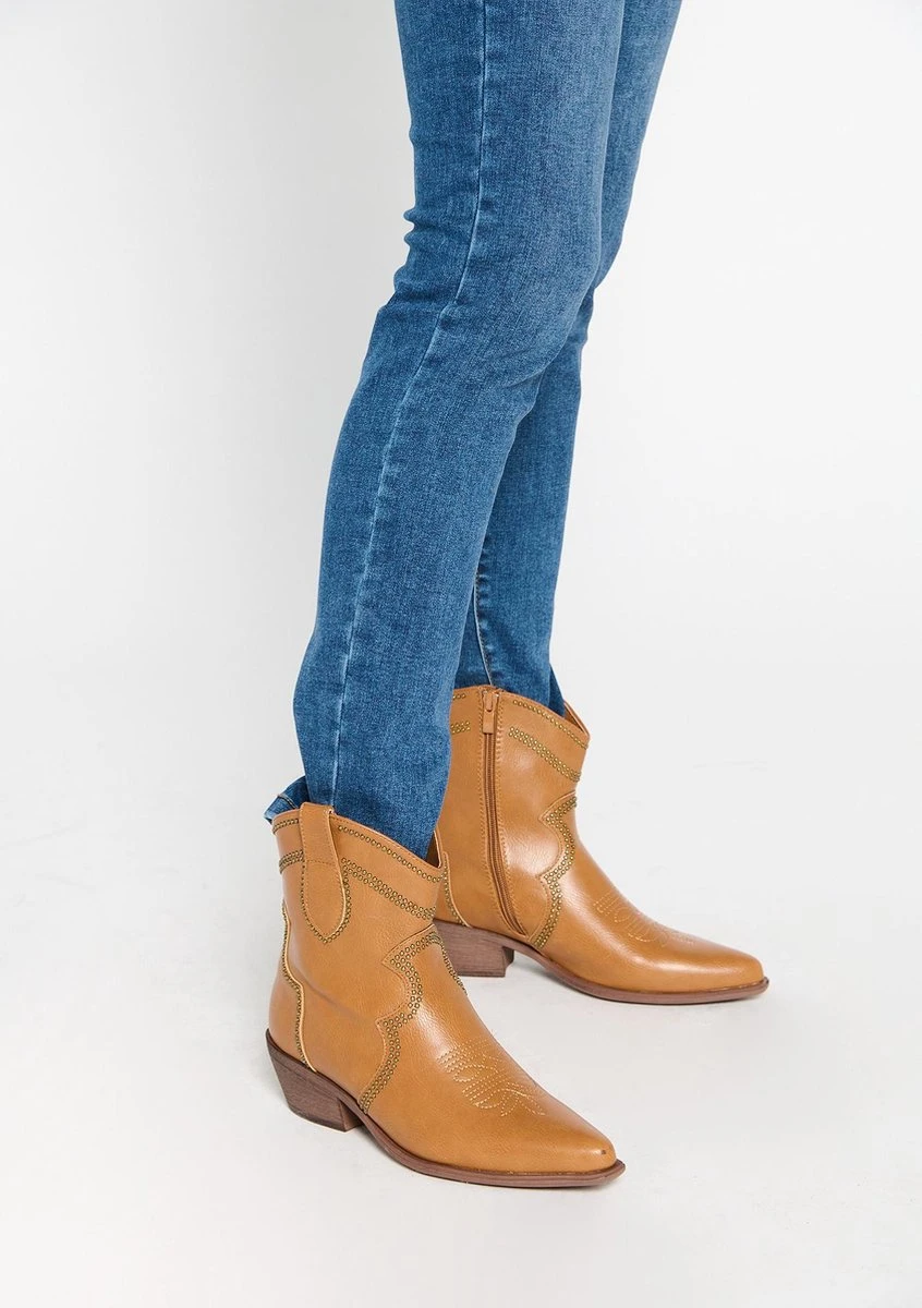 LOLALIZA Cowboy Enkellaarzen Met Mini Studs – Camel – Maat C36
