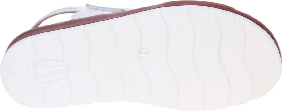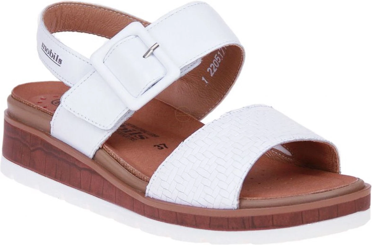 Wit lederen damessandaal van het merk Mephisto Mobils Ergonomic. De binnenzool is uitneembaar, ideaal voor steunzolen.