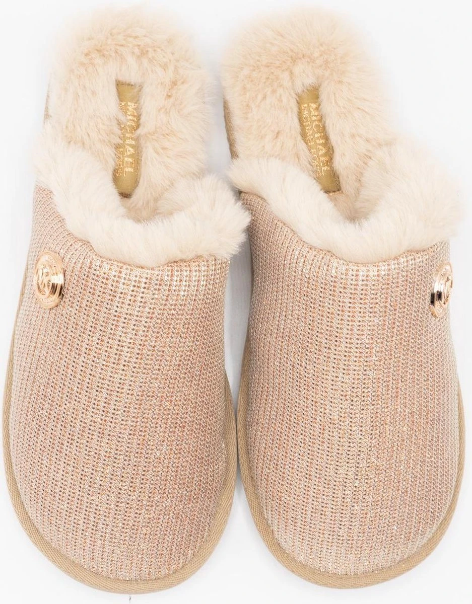 Lekkere warme slofjes uit de nieuwste collectie van Michael Kors. Zo loop je er thuis mooi bij mét warme voetjes.