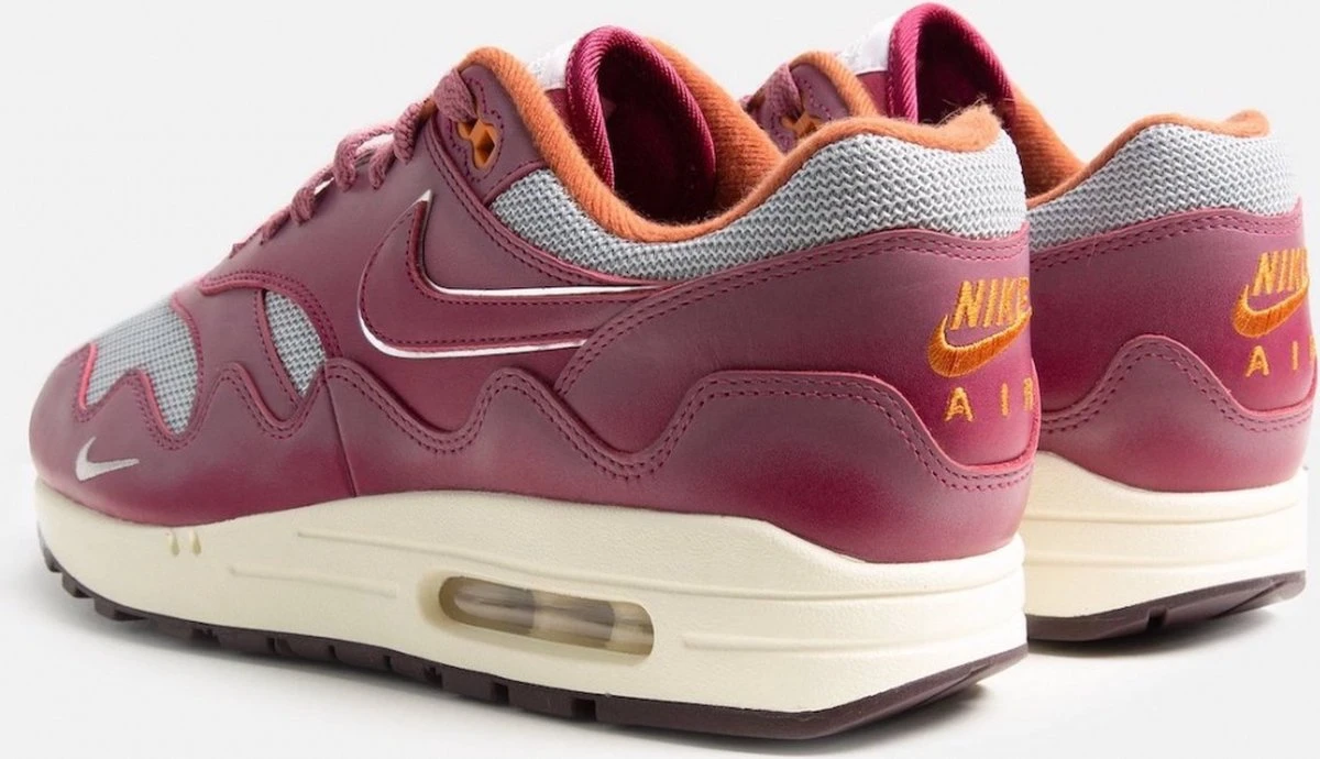 Het Amsterdamse Patta is niet meer weg te denken uit de Sneakerscene. Niet alleen in Nederland staan ze goed aangeschreven, maar dit geldt wereldwijd. Alle Patta releases op de Air Max 1 zijn een groot succes en deze ‘Wave’ collectie kent ook een flinke hype. Deze Rush Maroon is de derde colorway en is toch flink anders dan de voorgangers. Alle overlay panels zijn van leer, waarbij de anderen hier suède hadden zitten. Dit geeft deze sneaker een compleet andere look. De ‘hype’ zal hier echter niet minder om zijn.