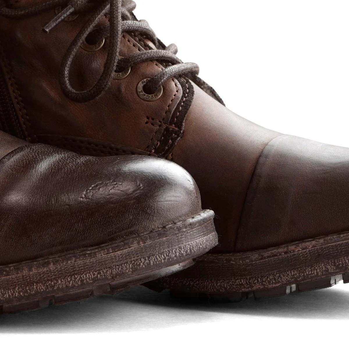 Deze stoere halfhoge schoen is gemaakt van hoogwaardig leder. De binnenzijde is volledig gevoerd, dat zorgt voor een soepele pasvorm en optimaal draagcomfort. De robuuste stijlvaste rubberen profielzool zorgt voor uitstekende grip tijdens alle weersomstandigheden.