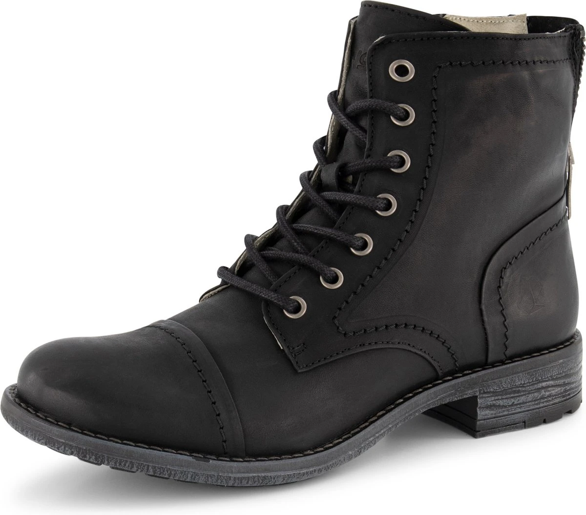 Deze stoere halfhoge schoen is gemaakt van hoogwaardig leder. De binnenzijde is volledig gevoerd, dat zorgt voor een soepele pasvorm en optimaal draagcomfort. De robuuste stijlvaste rubberen profielzool zorgt voor uitstekende grip tijdens alle weersomstandigheden.