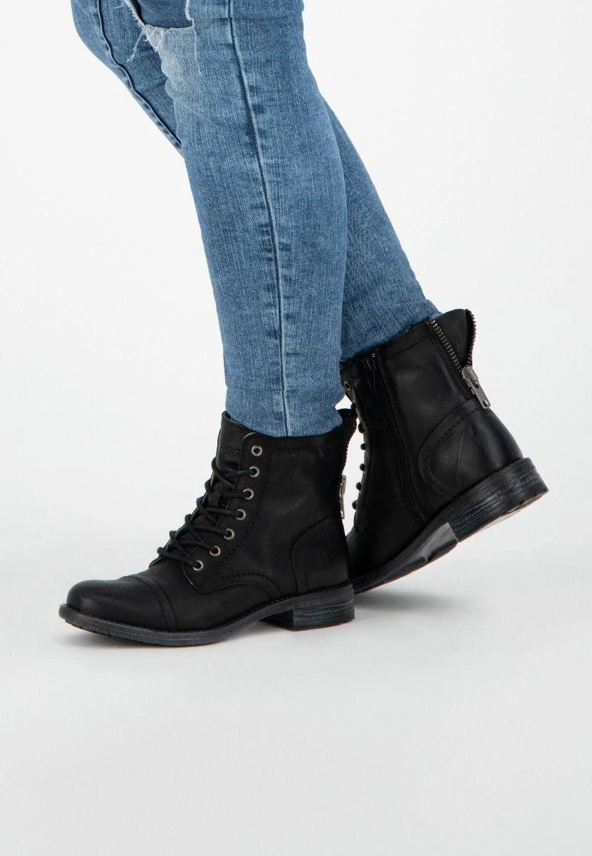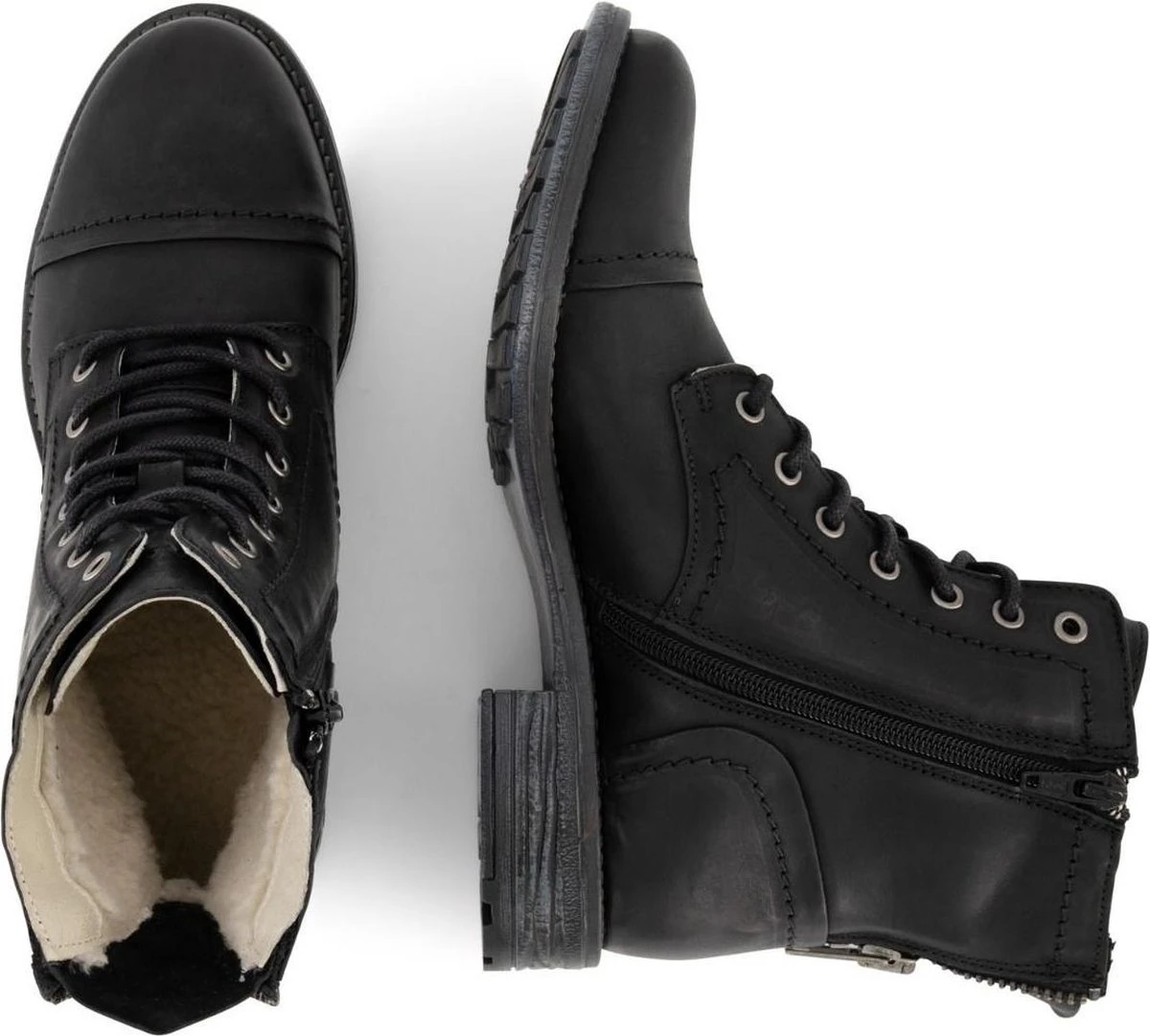 NoGRZ R.Mylne – Dames Leren Enkellaars – Winter Veterboots – Wol Gevoerd – Zwart – Maat 38