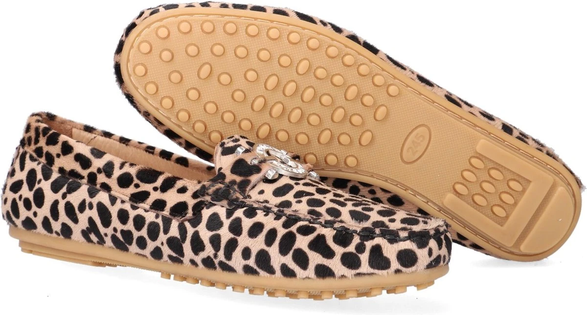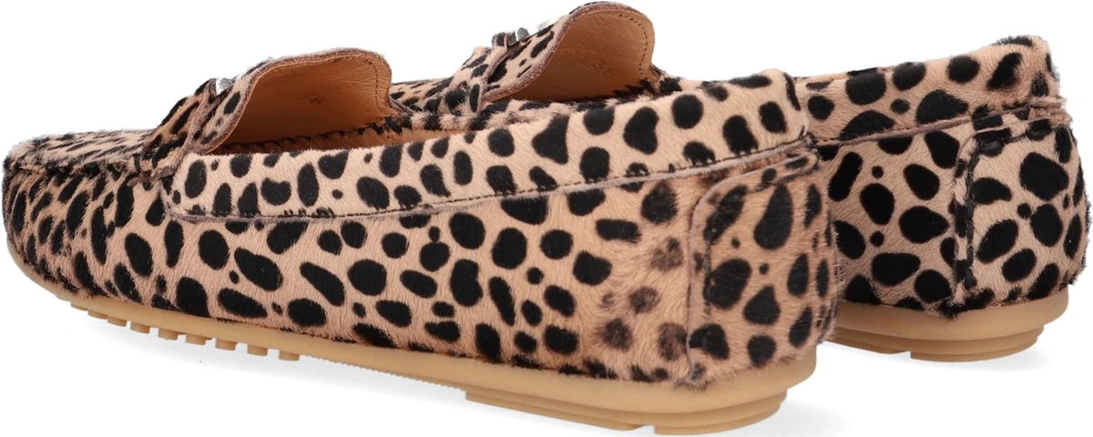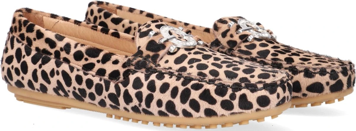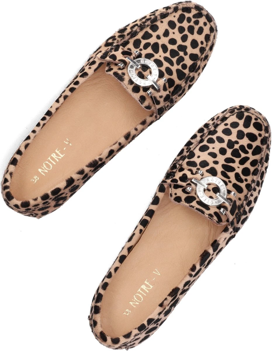 De elegante Italiaanse ontwerpen van het merk Notre-V zijn er voor de verfijnde vrouw die er graag effortless chic uit wil zien. De producten zijn gemaakt van luxe materialen met subtiele accenten en een knipoog naar de laatste trends. Met deze klassieke mocassin 03-A28 maak jij je outfit af en zorg je voor een elegante touch. De buitenkant is uitgevoerd in beige suède met panterprint en heeft een mooi en eenvoudig silhouet. De voering is gemaakt van leer met een uitneembaar voetbed. De opstaande naad met stoere stiksels en het het zilveren element op de wReef maken deze mocassin extra stijlvol. De zool met nopjesprofiel is van rubber en zorgt voor goede grip. Combineer deze schoen onder je favoriete jeans of onder een leuk rokjes of jurkje!