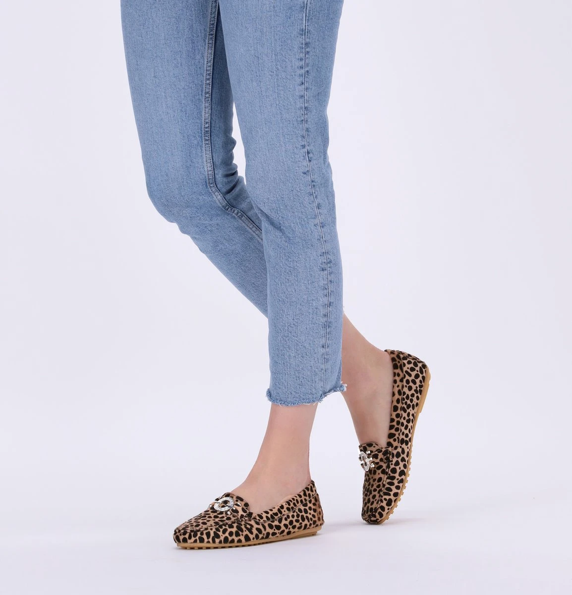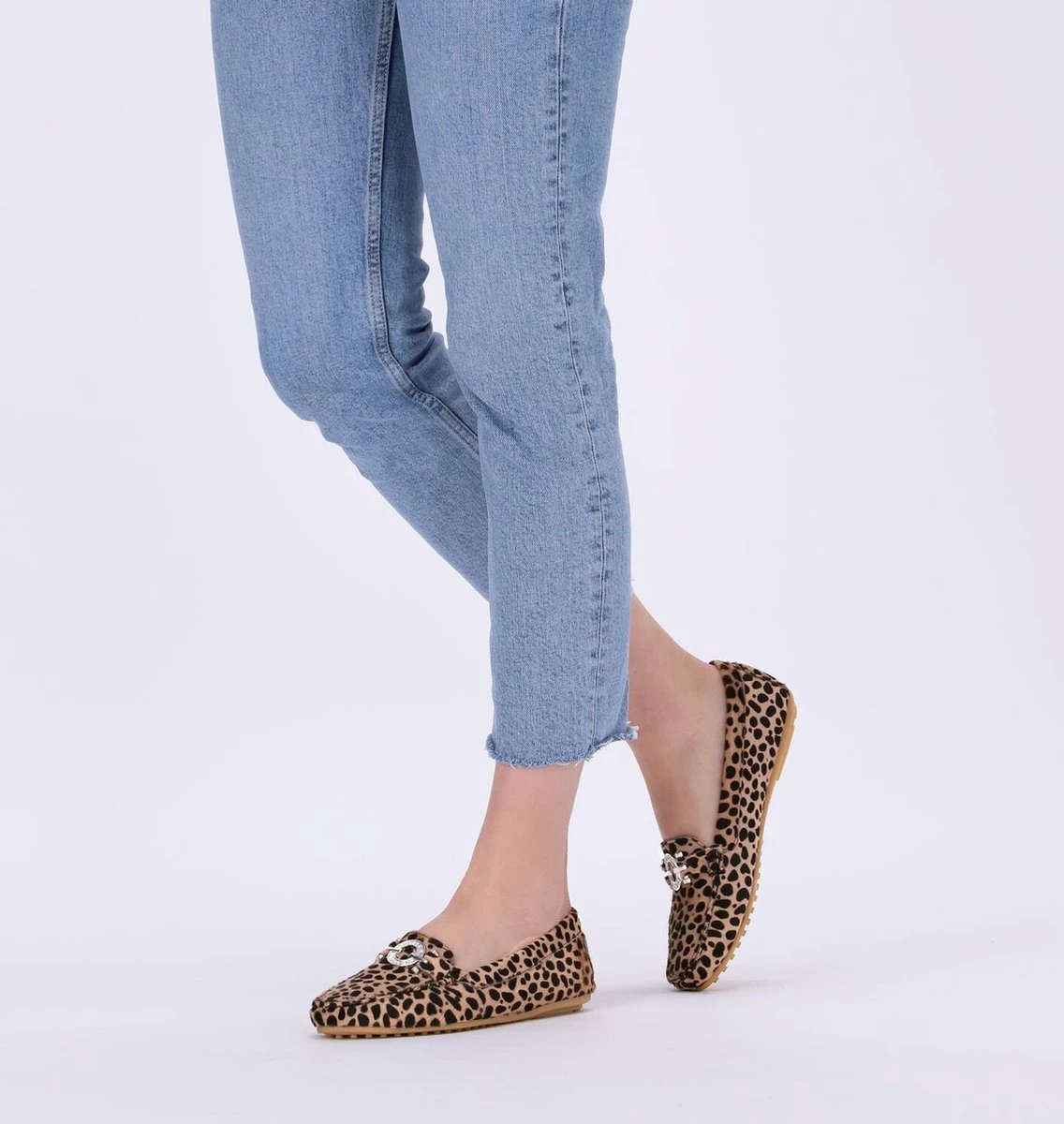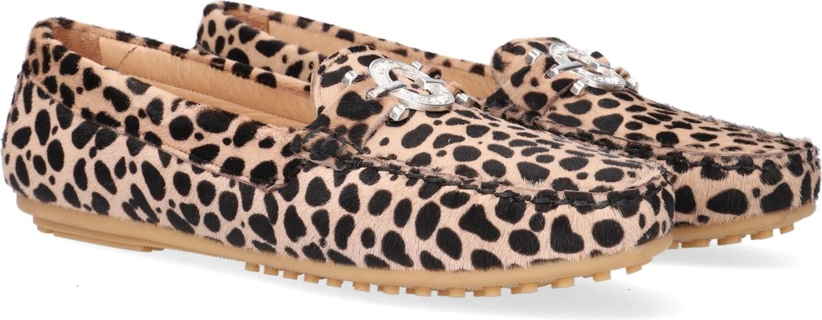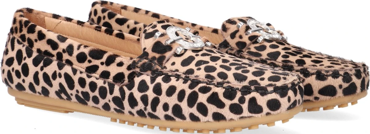 De elegante Italiaanse ontwerpen van het merk Notre-V zijn er voor de verfijnde vrouw die er graag effortless chic uit wil zien. De producten zijn gemaakt van luxe materialen met subtiele accenten en een knipoog naar de laatste trends. Met deze klassieke mocassin 03-A28 maak jij je outfit af en zorg je voor een elegante touch. De buitenkant is uitgevoerd in beige suède met panterprint en heeft een mooi en eenvoudig silhouet. De voering is gemaakt van leer met een uitneembaar voetbed. De opstaande naad met stoere stiksels en het het zilveren element op de wReef maken deze mocassin extra stijlvol. De zool met nopjesprofiel is van rubber en zorgt voor goede grip. Combineer deze schoen onder je favoriete jeans of onder een leuk rokjes of jurkje!