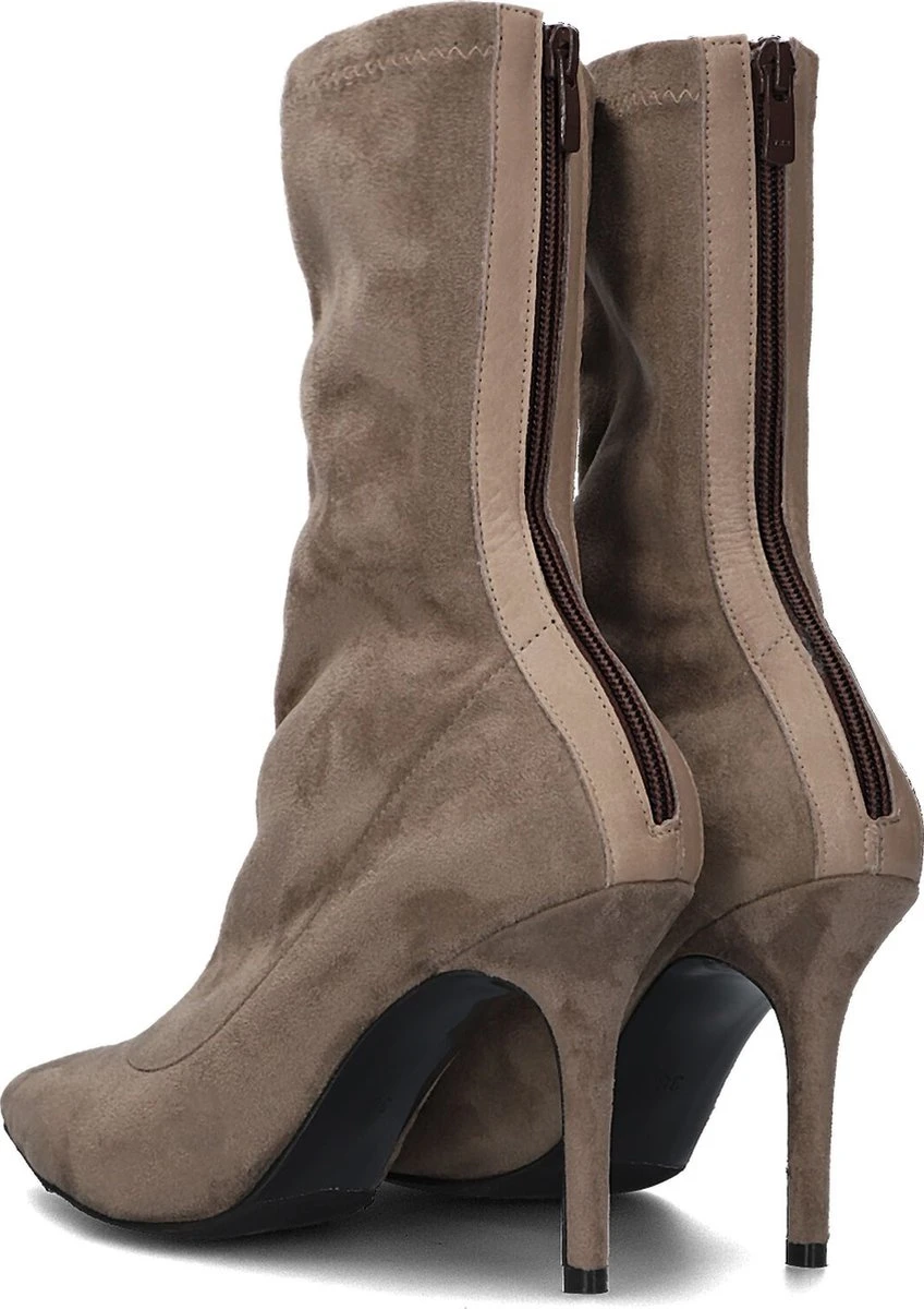De elegante Italiaanse ontwerpen van het merk Notre-V zijn er voor de verfijnde vrouw die er graag effortless chic uit wil zien. De producten zijn gemaakt van luxe materialen met subtiele accenten en een knipoog naar de laatste trends. Dit taupekleurige enkellaarsje 101 kenmerkt zich door de mooie suèdelook buitenkant met een puntige neus en heeft een bijpassende naaldhak van 9 centimeter hoog. Door de soepele schacht en de ritssluiting met lederlook bies aan de achterzijde heb je een gemakkelijke instap en sluit hij mooi om je enkel aan. Het binnenwerk van textiel met het leren, vaste voetbed voelt comfortabel aan. De schacht heeft een hoogte van 21 centimeter, gemeten bij maat 38 en de loopzool is uitgevoerd in rubber in combinatie met een kunststof haktip. Onder welk outfit laat jij dit laarsje mooi uitkomen?