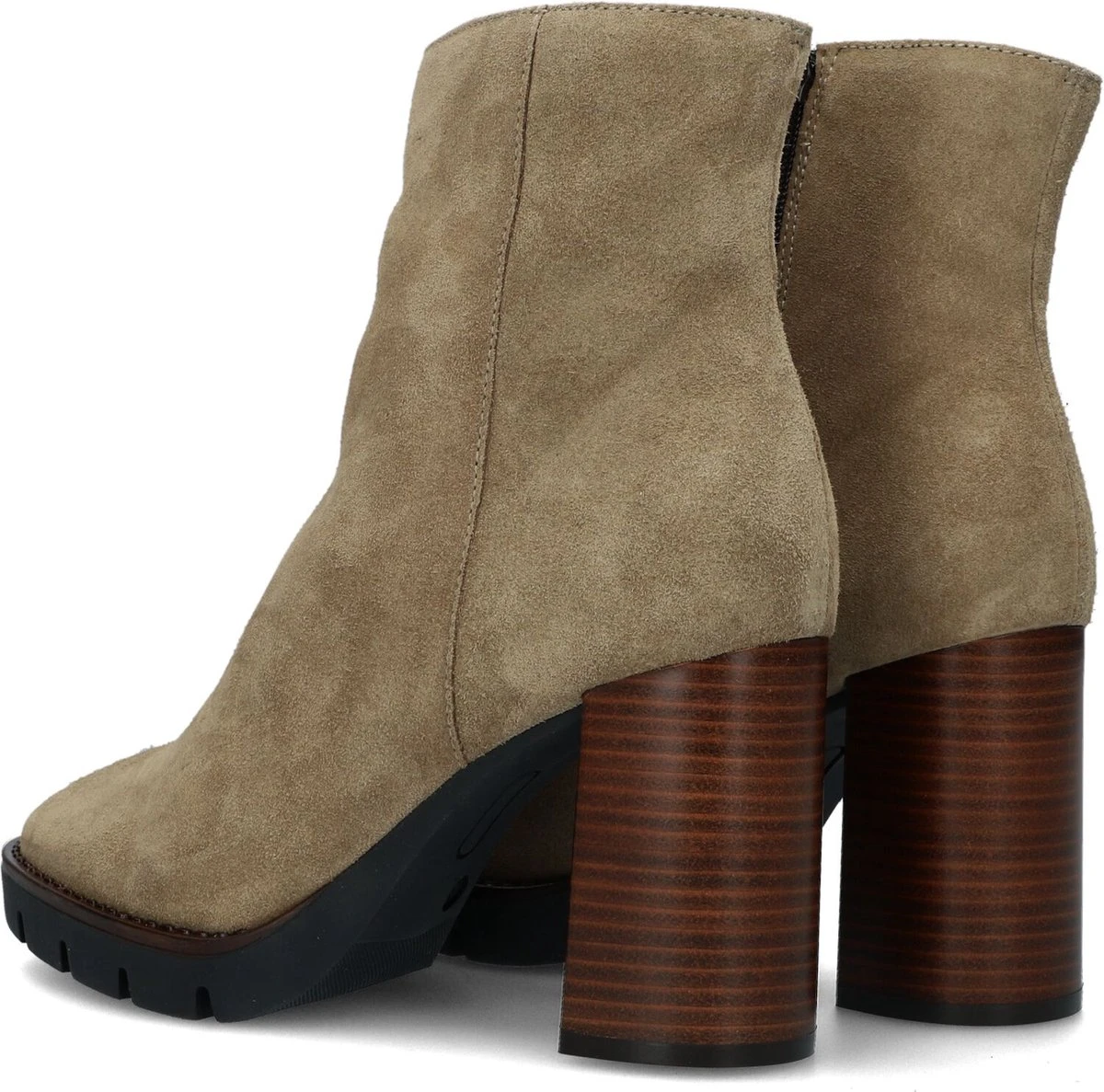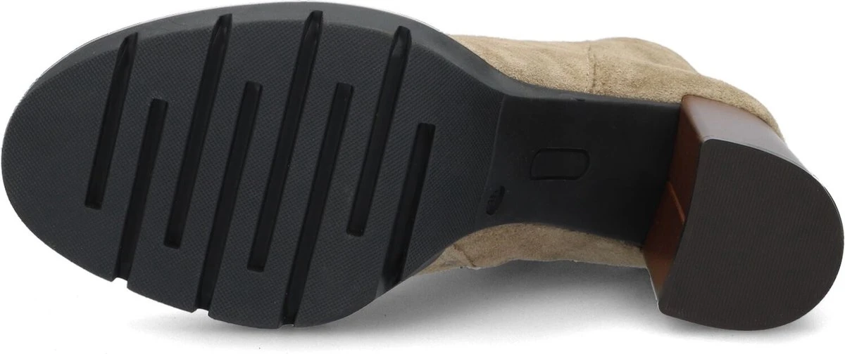 De elegante Italiaanse ontwerpen van het merk Notre-V zijn er voor de verfijnde vrouw die er graag effortless chic uit wil zien. De producten zijn gemaakt van luxe materialen met subtiele accenten en een knipoog naar de laatste trends. Dit beige enkellaarsje 50183 kenmerkt zich door de mooie suède buitenkant met ronde neus en bijpassende hoge blokhak van 9 centimeter hoog. De ritssluiting aan de binnenzijde van de laars zorgt voor een gemakkelijke instap. Het binnenwerk is gemaakt van textiel en het vaste voetbed voelt comfortabel aan. De schacht heeft een hoogte van 13 centimeter, gemeten bij maat 38. De rubberen loopzool heeft een hoogte van 2 centimeter bij de voorvoet. De blokhak met een houtlook uitstraling heeft een kunststof haktip. Onder welk outfit laat jij dit laarsje mooi uitkomen?