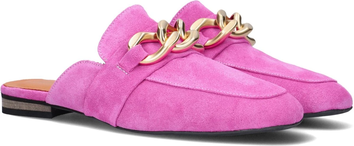 De elegante, Italiaanse ontwerpen van het merk Notre-V zijn er voor de verfijnde vrouw die er graag effortless chic uitziet. Gemaakt van luxe materialen met subtiele accenten en een knipoog naar de laatste trends. Deze opvallende loafer 5602-01 met open hiel is uitgevoerd in fuchsia suède met een goudkleurig kettingdetail op de wReef. De voering is van leer en de schoen heeft een vast, leren voetbed met demping voor extra comfort. Verder heeft dit model een afgeronde carréneus en een laag hakje van 2,5 centimeter. Draag dit item onder een jeans, jurk of rok. Waar ga jij voor?