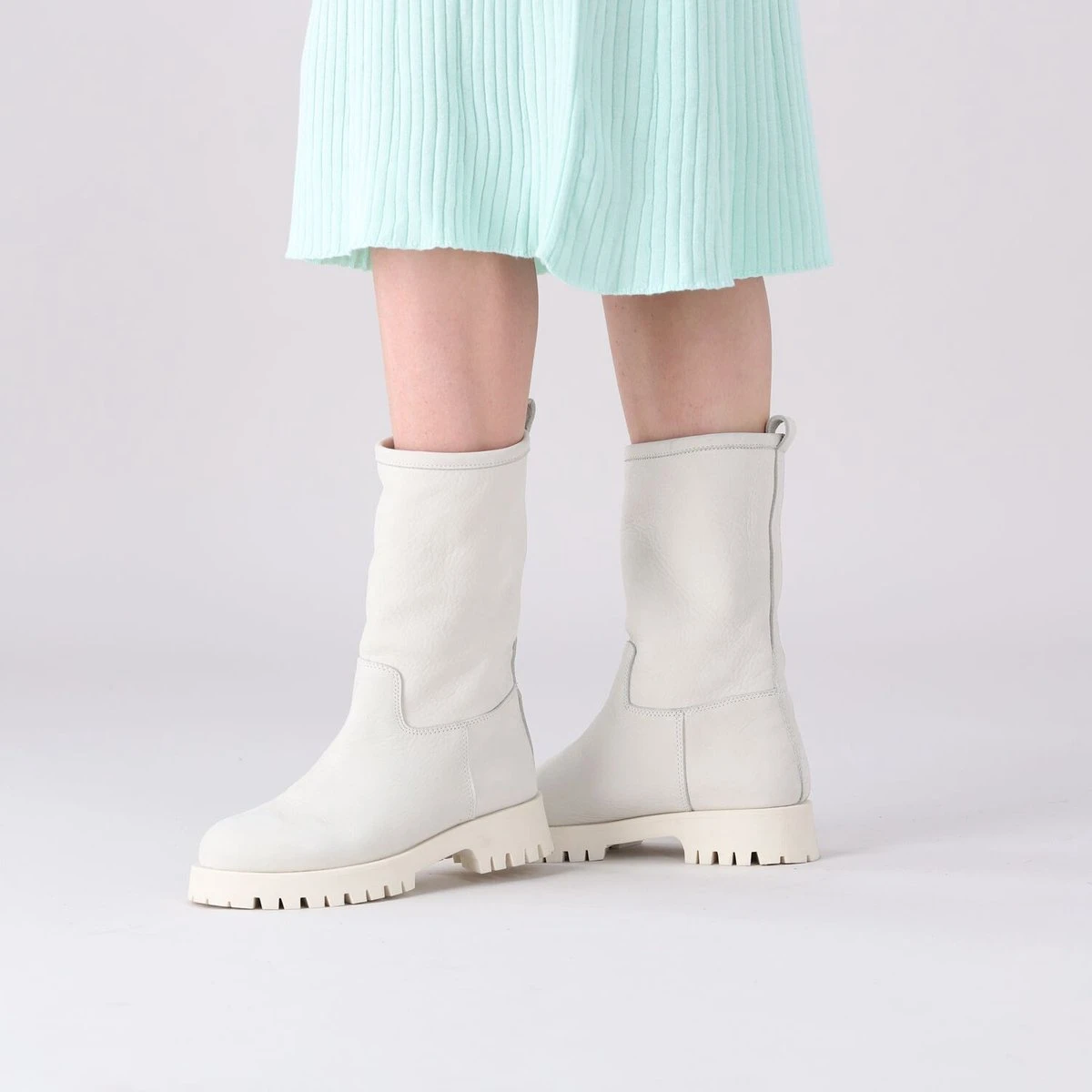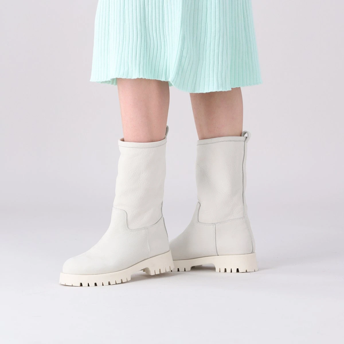 Deze witte hoge enkelboots 753114 van het luxe merk Notre-V zijn dé trend dit seizoen en maken jouw outfit extra cool! Ze zijn stoer, comfortabel én trendy door de kwalitatieve materialen in combinatie met de toffe vormgeving. Daarnaast sluiten ze mooi aan en accentueren ze de mooie vormen van jouw benen! De boots zijn gemaakt van luxe en soepel nubuck met aan de bovenzijde een gekreukeld effect. De beige leren voering zorgt voor ultiem comfort en het vaste leren voetbed is voorzien van een dempende schuimlaag voor loopcomfort de hele dag door. De chunky zool is van lichtgewicht microrubber en heeft een grof profiel voor een zeer goede grip. De zool is ruim 3 centimeter dik onder de voorvoet en loopt naar achteren toe op tot ruim 4 centimeter hakhoogte. De schacht met een aantreklus aan de achterkant heeft een hoogte van ruim 25 centimeter. Combineer ze nonchalant met een jeans of lekker stoer met jouw lievelingsjurk!