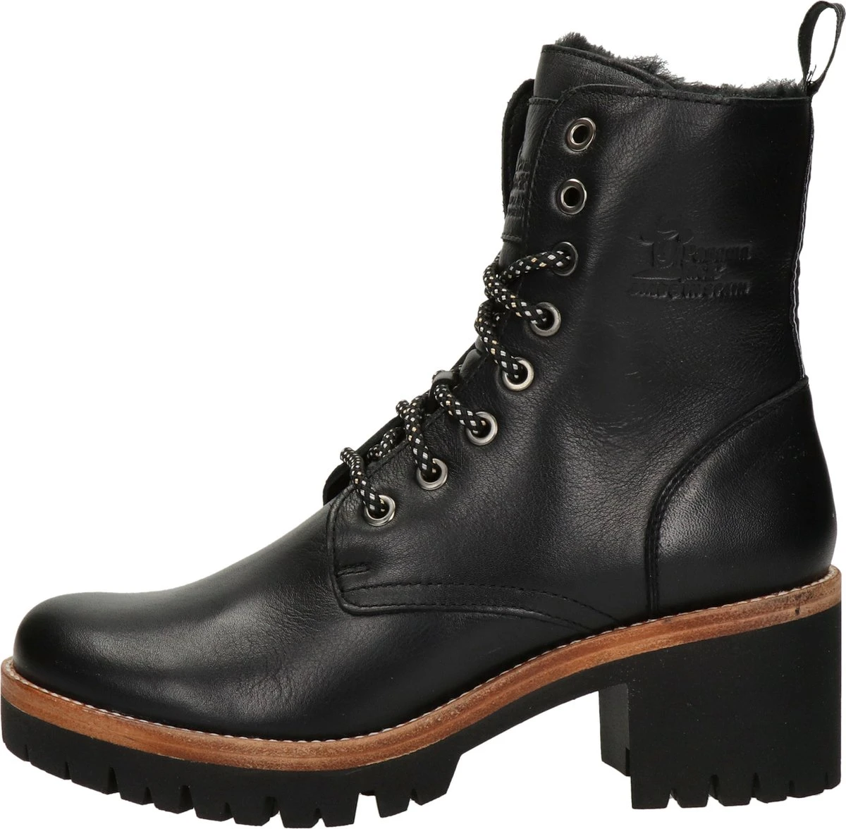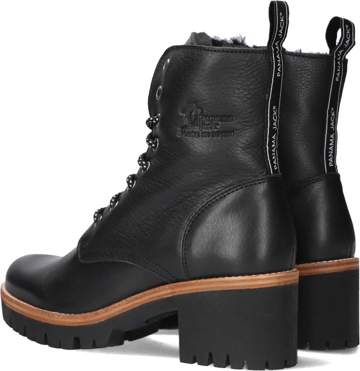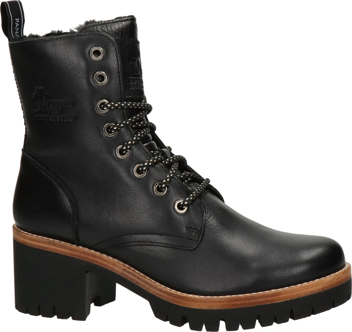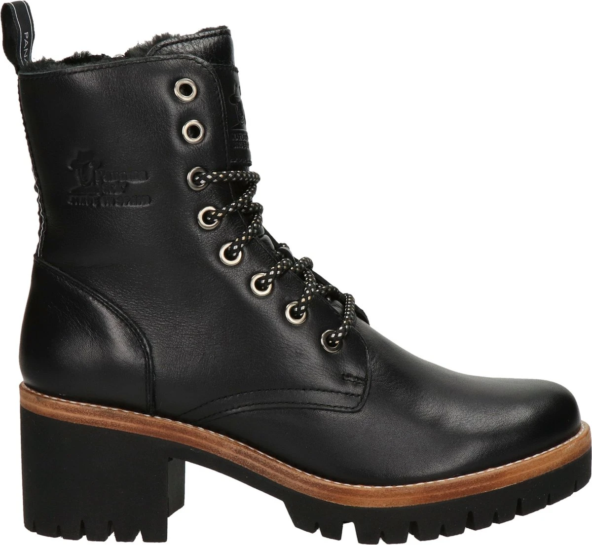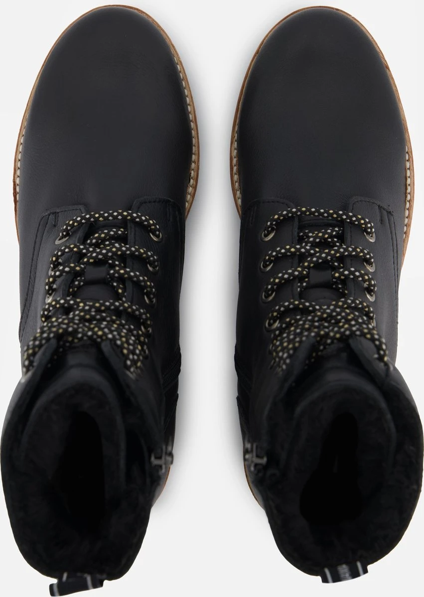 Deze zwarte Panama Jack Padma B2 veterboots zijn gemaakt van leer. De warme voering van imitatiebont houdt jouw voeten heerlijk warm dit najaar! Draag de boots onder een jurk of een jeans, je combineert ze makkelijk met al jouw favoriete outfits. De laarzen zijn waterproof, dus je hoeft niet bang te zijn voor natte voeten. Met de rits aan de zijkant trek je de stoere schoenen snel aan en uit en met de veters stel je de boots goed aan je voeten af. De rubberen profielzool geeft deze schoenen een stoere look. De Panama Jack Padma B2 veterboots hebben een vast voetbed.
