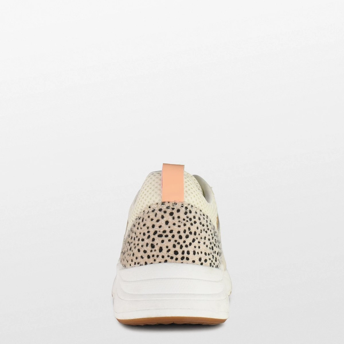 Deze sportieve ‘CAROCEL’ sneaker voor dames van POSH by Poelman heeft een bovenwerk van beige imitatieleer met goudkleurige metallic details en een subtiele panterprint. Het model heeft een voering van textiel en een vast comfortabel voetbed. De chunky zool met een hoogte van 4 cm in combinatie met het nude kleurgebruik maakt deze sneaker uniek en trendy. De schoen is makkelijk te combineren onder een mooie jeans, witte broek of jurk.
