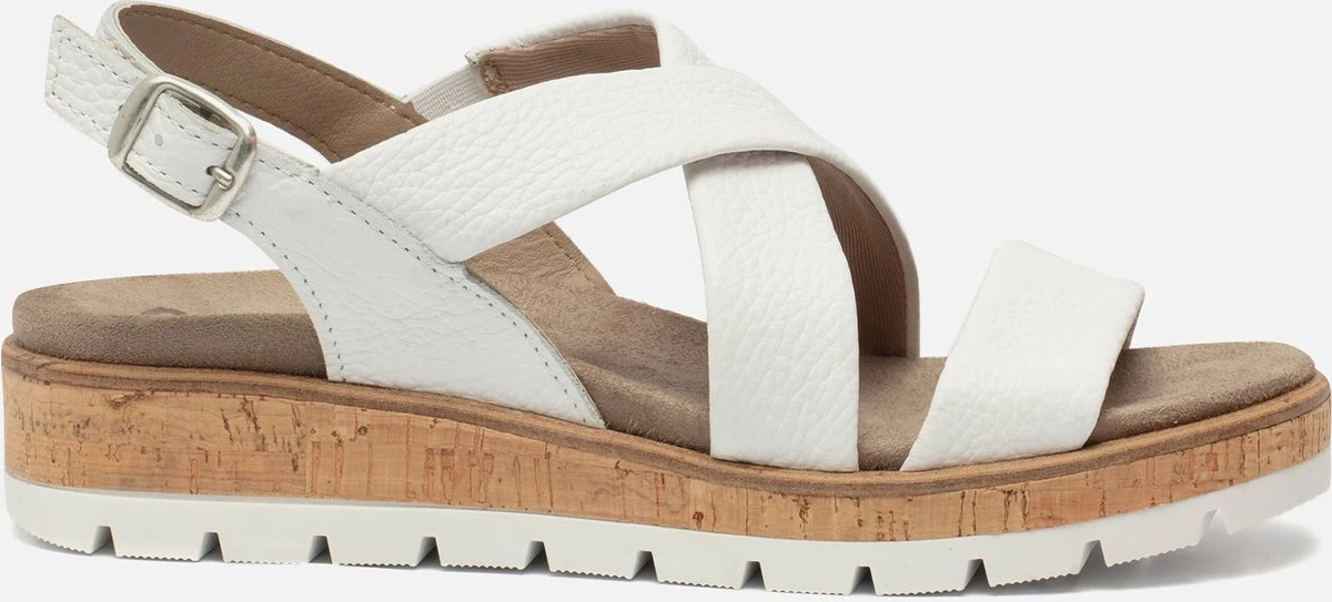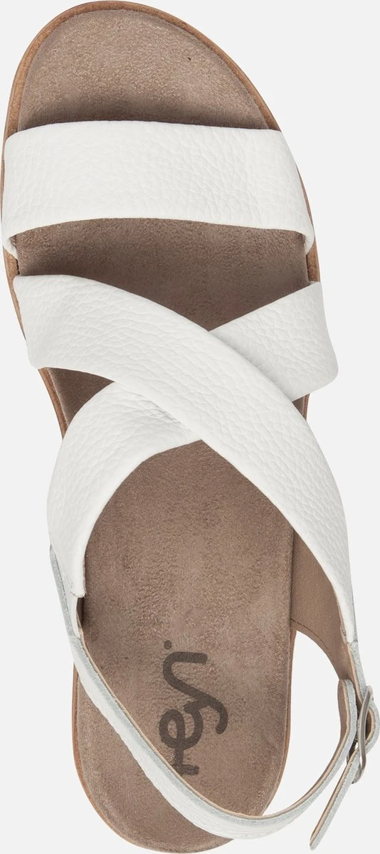 De witte Feyn sandalen zijn zomerse schoenen. De sandalen zijn gemaakt van leer en hebben binnenzool van synthetische materialen. De gespsluiting zorgt voor een goede pasvorm. Leuke details zijn de brede gekruiste banden bij de tenen en de tussenzool van kurk. De witte rubberen zool biedt veel grip tijdens het lopen. Het merk Feyn staat voor uitstekend comfort. Daarom is het geen probleem om een dag op pad te gaan met deze leuke sandalen. De Feyn sandalen hebben een uitneembaar voetbed.