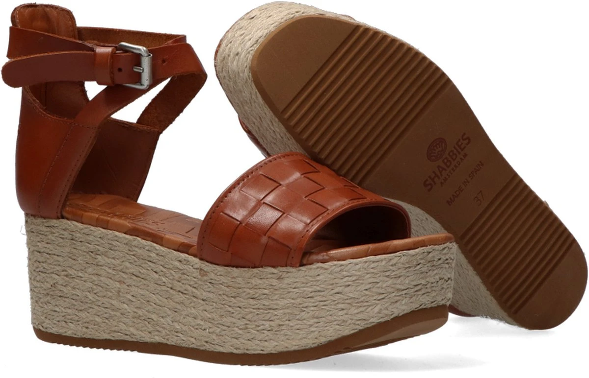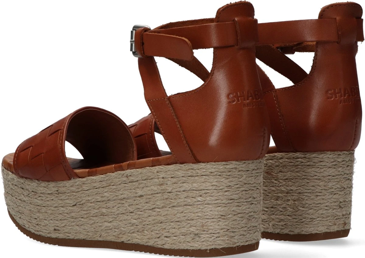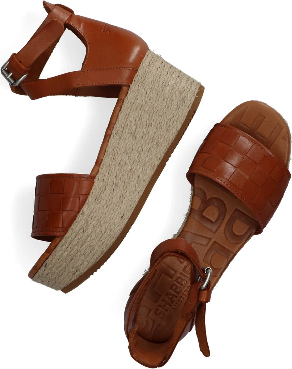 Het streven van het Amsterdamse merk Shabbies is dat jij je zelfverzekerd en goed voelt met iedere stap die je zet. Dat doen ze door toffe schoenen te maken van mooie materialen met een hoge kwaliteit, een uniek design en een vrouwelijke touch. Deze platformsandaal 154020008 is gemaakt van cognackleurig stevig leer en heeft een brede gevlochten band over de voorvoet en een dicht achterpand met reliëf merkopdruk. De smalle enkelbandjes zorgen voor een vrouwelijke uitstraling en met het zilverkleurige gespje maak je ‘m goed passend aan jouw voet. Het binnenwerk is van leer en suède en het licht opgevulde voetbed is voorzien van oversized merkopdrukken all-over. Deze stoere sandaal heeft een moderne platformzool die met gevlochten jute bekleed is en een karamelbruine loopzool met gripvast ribbelprofiel heeft. De zool is 5 centimeter dik onder de voorvoet en loopt naar achteren toe op tot een hakhoogte van bijna 7 centimeter. Wij vinden het een fantastisch goede kandidaat om onder iedere outfit te dragen en de show mee te stelen!
