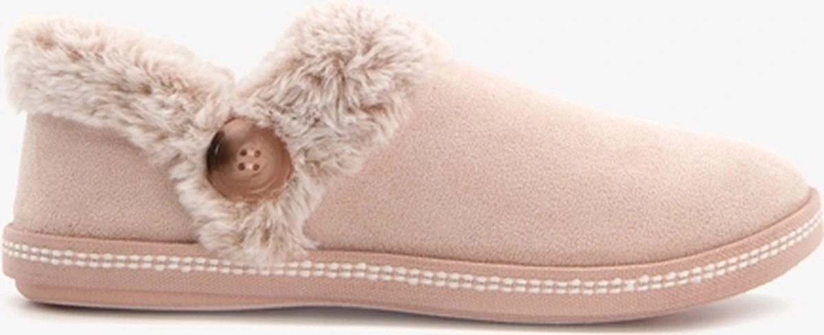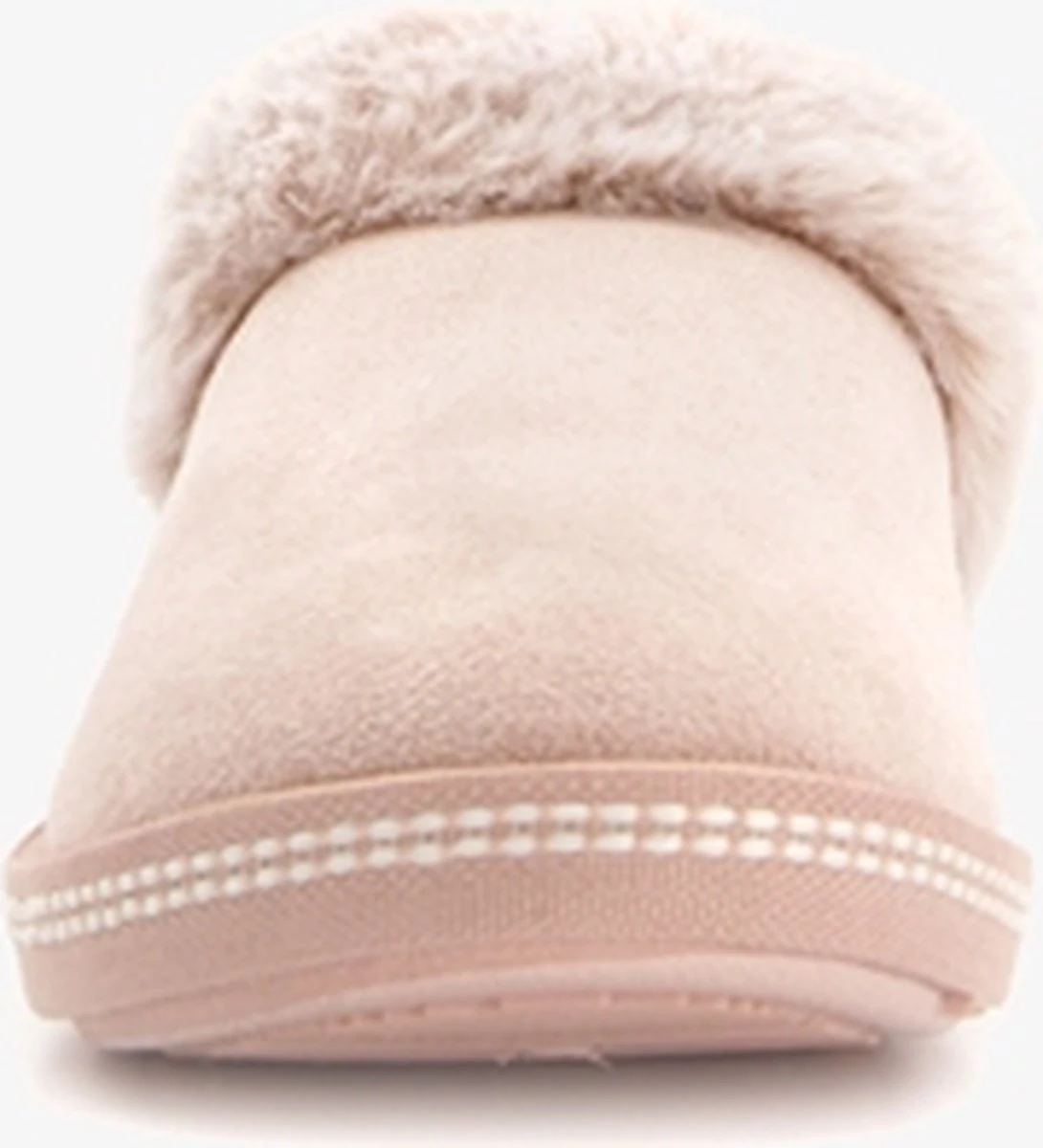 Lichtroze Skechers Cozy Campfire Fresh Toast dames pantoffels. Deze heerlijk warme Skechers pantoffels hebben een zachte buitenzijde van textiel en een imitatiebond binnenzijde. De binnenzool is gemaakt van textiel. De zool is voorzien van memory foam waardoor ze heerlijk comfortabel zitten! De zool is niet uitneembaar. De pantoffels hebben een decoratief knoopje op het buitenwerk. De pantoffels zijn voorzien van een stevige buitenzool.