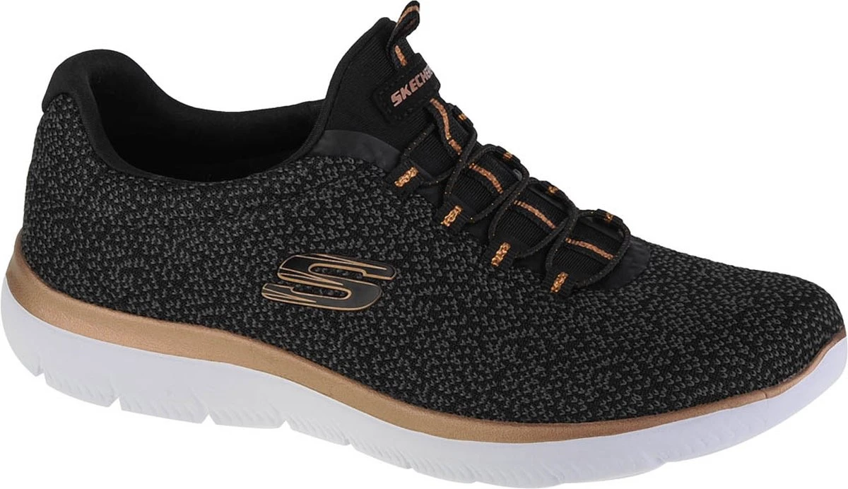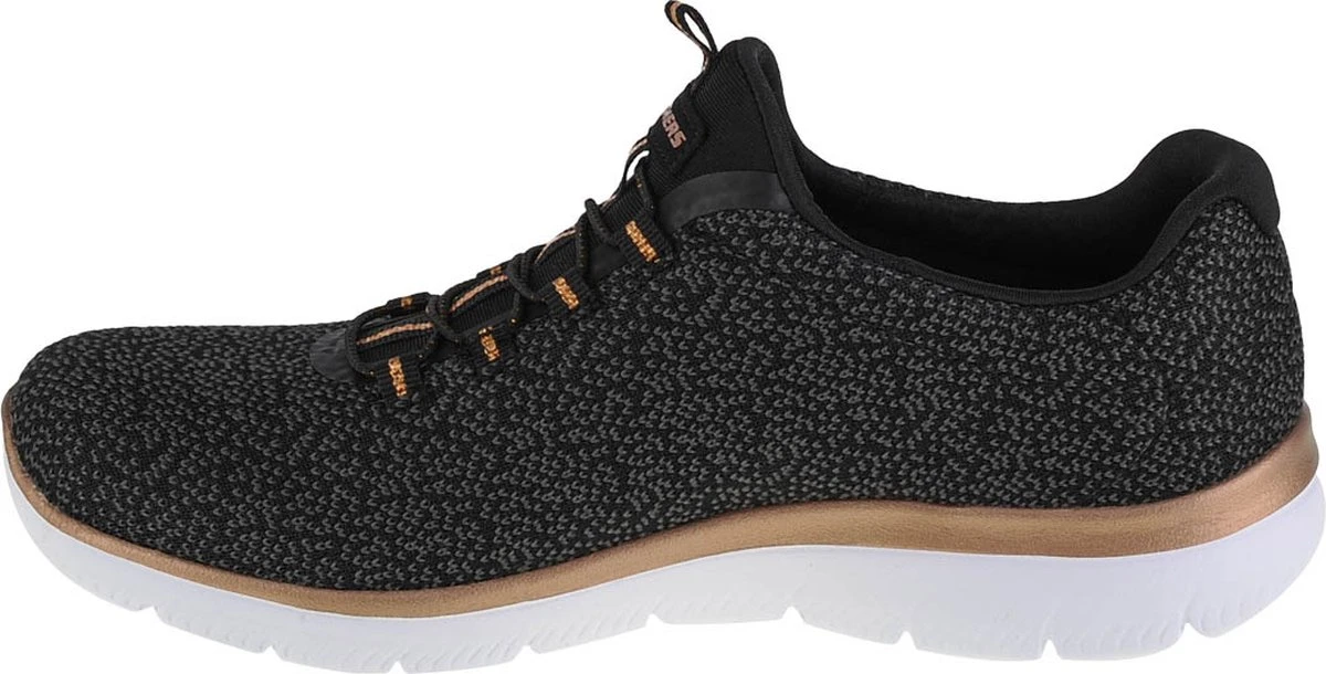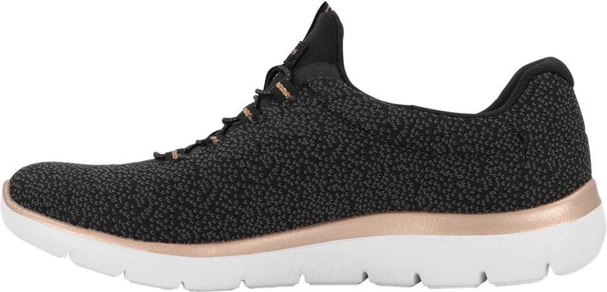 Skechers Summits dames sneaker. Comfortabel en sportief. Dat is deze sneaker van het merk Skechers. Uitgevoerd in textiel. De binnenkant is gevoerd met textiel. Het memory foam voetbed biedt veel demping en comfort. Voorzien van een flexibele rubberen zool. Gemakkelijk in en uit stappen dankzij de elastieken veters.