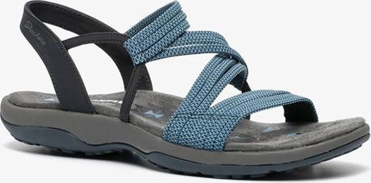 Blauwe Skechers Reggea Slim Skech Appeal dames sandalen. Gemaakt van textiel, een binnenwerk van textiel en een stevige profielzool. De sandalen hebben elastische bandjes voor een makkelijke instap. Het comfortabele voetbed is gemaakt van textiel en bevat memory foam voor optimaal comfort. De Skechers Reggea Slim Skech Appeal dames sandalen hebben een rubberen zool voor grip en demping. Ook geschikt als wandelsandaal!
