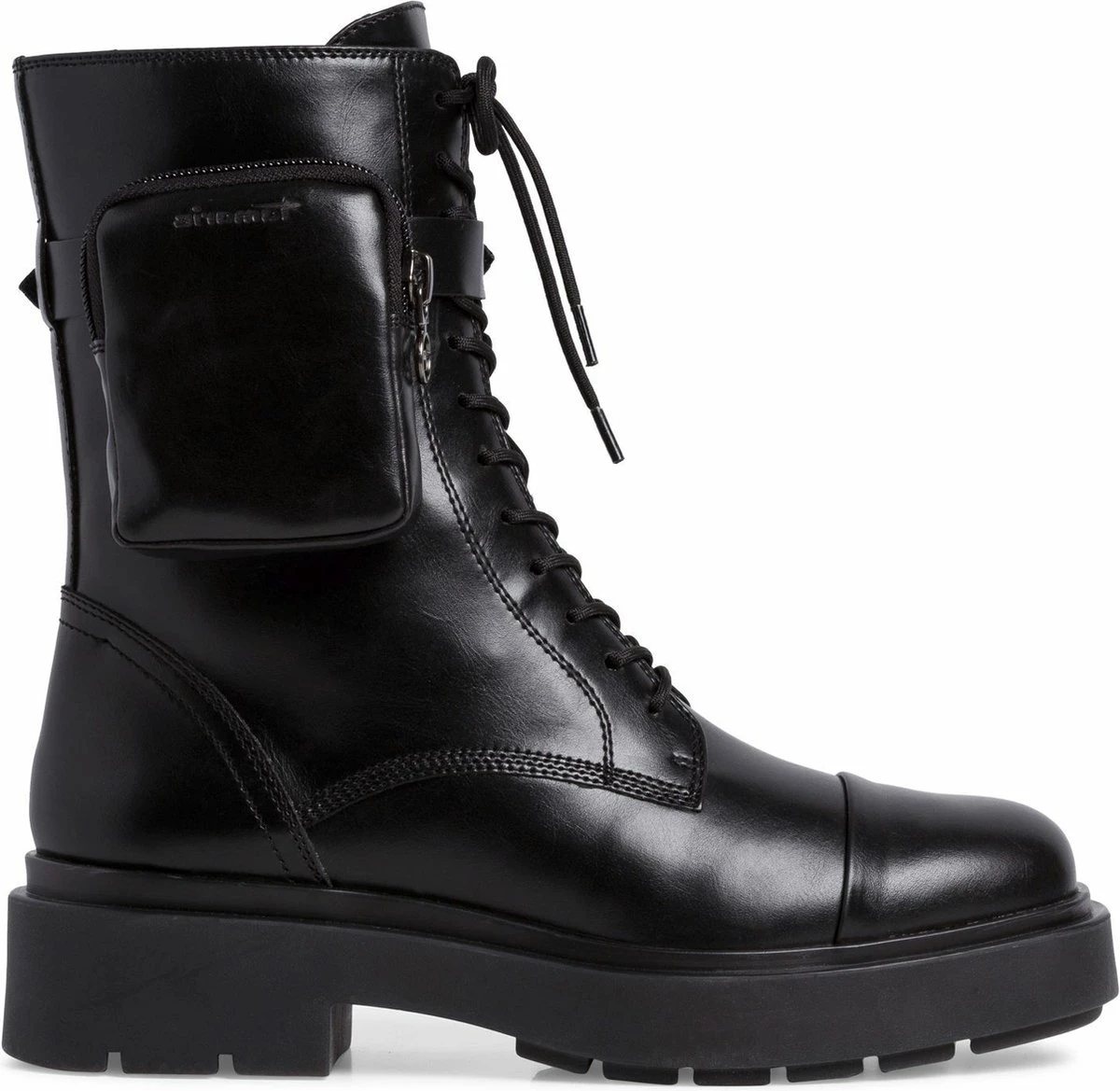 Deze zwarte Tamaris veterboots zijn gemaakt van imitatieleer. De voering en comfortabele binnenzool zijn gemaakt van textiel. Ter decoratie zijn er verschillende inzetten, merkopdrukken en sierstiksels aangebracht. Aan de schacht is een klein tasje bevestigd. Erg handig voor je sleutels! De boots zijn te sluiten door middel van een rits en een veter. Hierdoor kan je de schoenen gemakkelijk aan- en uittrekken. Het voetbed is voorzien van de Touch-It technologie. Dit betekent dat het voetbed zich aanpast aan de individuele voetvorm. Hierdoor lopen deze boots erg comfortabel! De chunky zool is gemaakt van rubber en heeft een blokhak van 4 centimeter hoog. Het voetbed van deze zwarte Tamaris veterboots is niet uitneembaar.