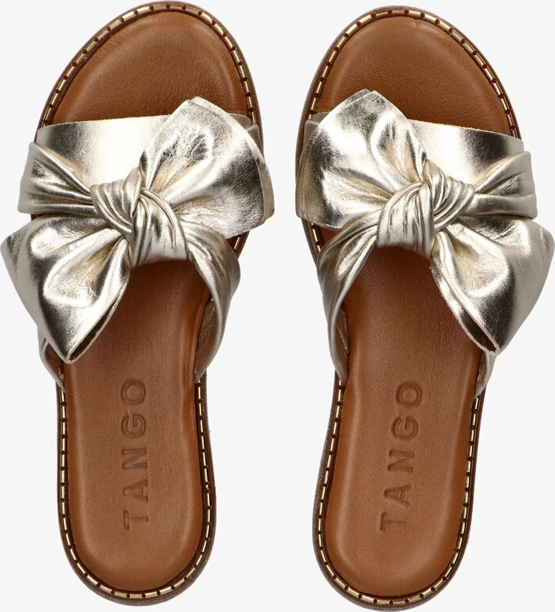 Tango | Audrey 1-g Platino Gold Bow Slipper – Cognac Sole | Maat: 39