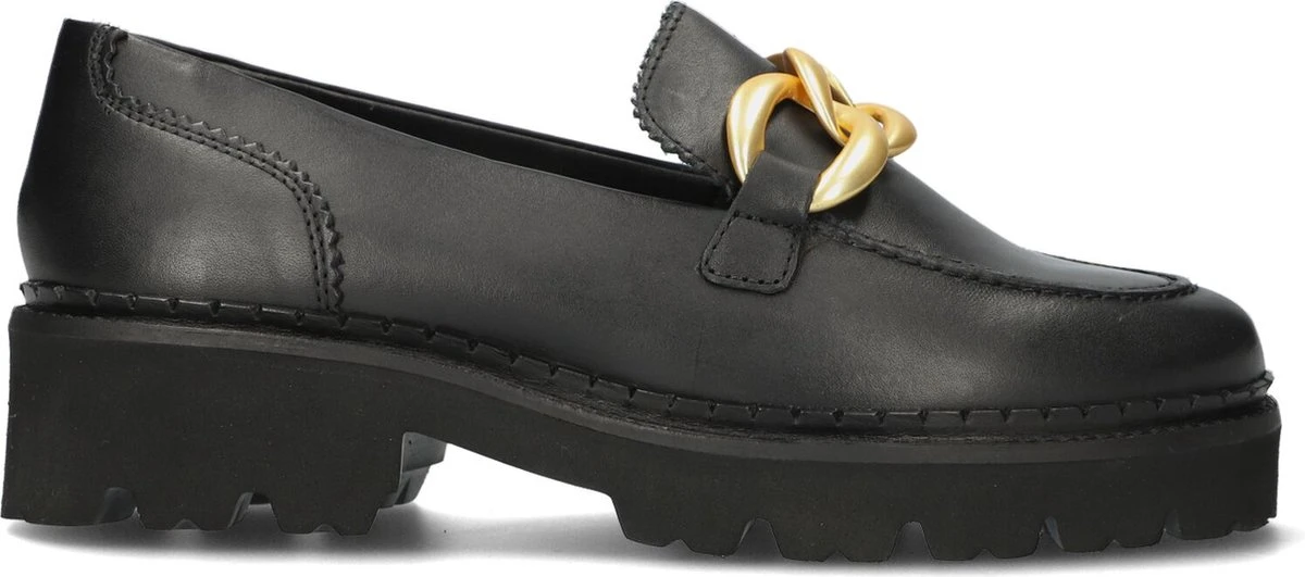Maak een statement met deze toffe loafers BEE Bold 540 met chunky zolen! Ze zijn supermakkelijk te matchen met allerlei outfits en zitten ook nog eens heerlijk! Dit zwarte model is van het merk Tango en is uitgevoerd in soepel, glad leer. De loafer heeft een verfijnde neusnaad, kartel afwerkrandjes en een goudkleurige ketting detail over de wReef. Het binnenwerk heeft een voering van leer en een uitneembaar voetbed. De rubberen chunky zool met grove vormen op de zoolrand geven de schoen een stoere look en tegelijkertijd veel grip. De zool is 2,5 centimeter dik onder de voorvoet met een hakhoogte van 4 centimeter. Draag deze loafers bij al je favoriete items!