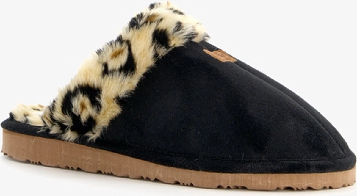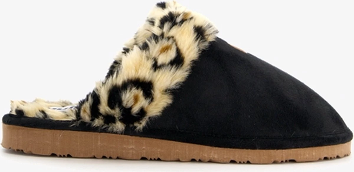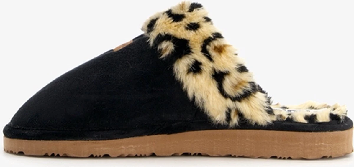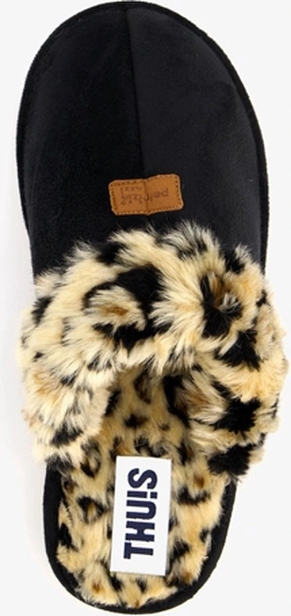 Thu!s Dames Pantoffels Met Luipaardprint – Zwart – Maat 38 – Sloffen