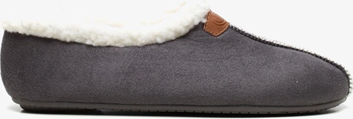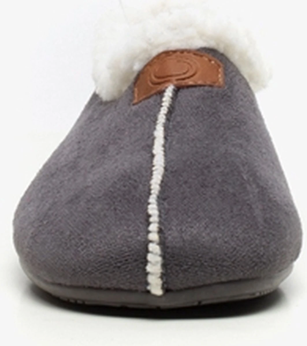 Grjize pantoffels voor dames van Thu!s. Gemaakt van textiel, een zachte voering van textiel en een stevige zool.
