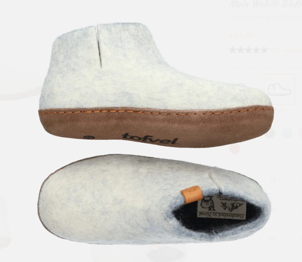 Tofvel Mula beige pantoffels dames en heren Geniet thuis van heerlijk warme voeten met deze comfortabele Tofvel pantoffel. De Tofvel is voor zowel dames als heren en verkrijgbaar in maat 35 t/m 47. Ben je op zoek naar heerlijk warme wollen sloffen? Dan hoef je niet verder te zoeken. De pantoffels van Tofvel zitten heerlijk en houden de voeten aangenaam op temperatuur. Lekker warm in de winter en koel in de zomer. De duurzame sloffen worden met de hand vervaardigd in Nepal, zonder toepassing van chemicaliën. De schacht van de pantoffel bestaat uit één geheel, gemaakt van 100% wolvilt afkomstig van vrij grazende schapen. De zachte zool is alleen geschikt voor binnenshuis, maar biedt hier wel goede grip op de gladde vloeren. De sloffen zijn een genot om te dragen en dankzij de gebruikte materialen hebben ze een aantal fijne eigenschappen. Het wolvilt is ademend en houdt de voeten comfortabel op temperatuur. Kleur: beigeMateriaal bovenwerk: wol, vilt