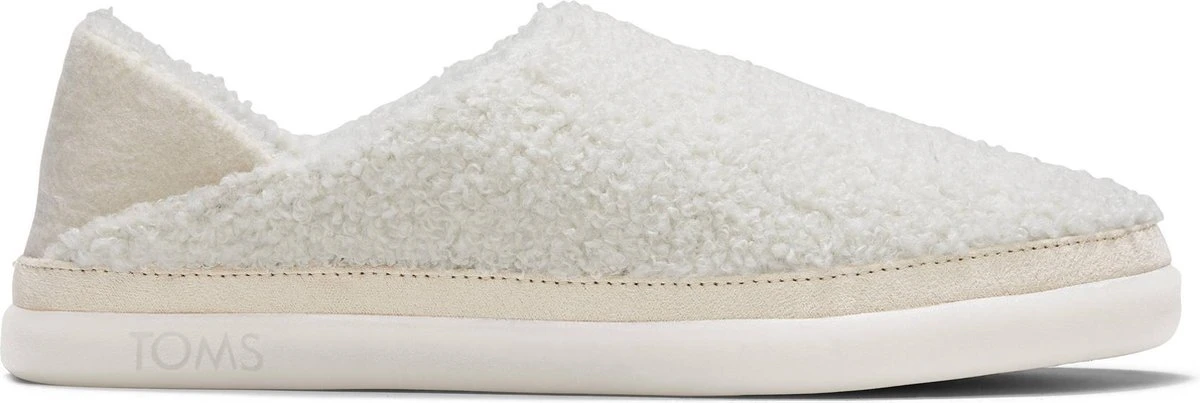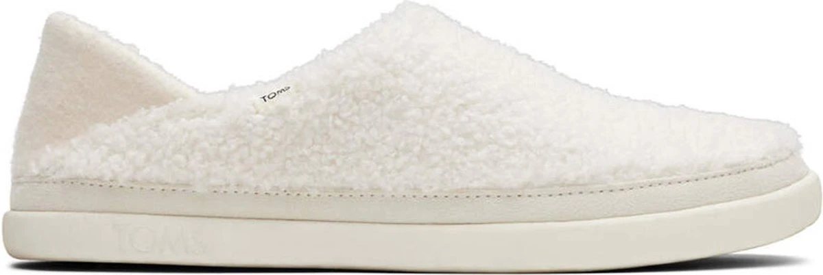 Nooit meer koude voeten met deze heerlijke pantoffels Ezra uit de “Earthwise™-collectie” van het merk Toms. Dit witte model is gemaakt van gerecyclede plastic flessen met een voering van zacht imitatiebont. Leuk detail is het vouwbare hielstuk waardoor je pantoffel in een handomdraai om tovert tot een instapper. De soepele rubberen buitenzool heeft een fijn profiel met merkreliëf. Perfect voor tijdens de koude winterdagen en een leuk cadeau om te geven.