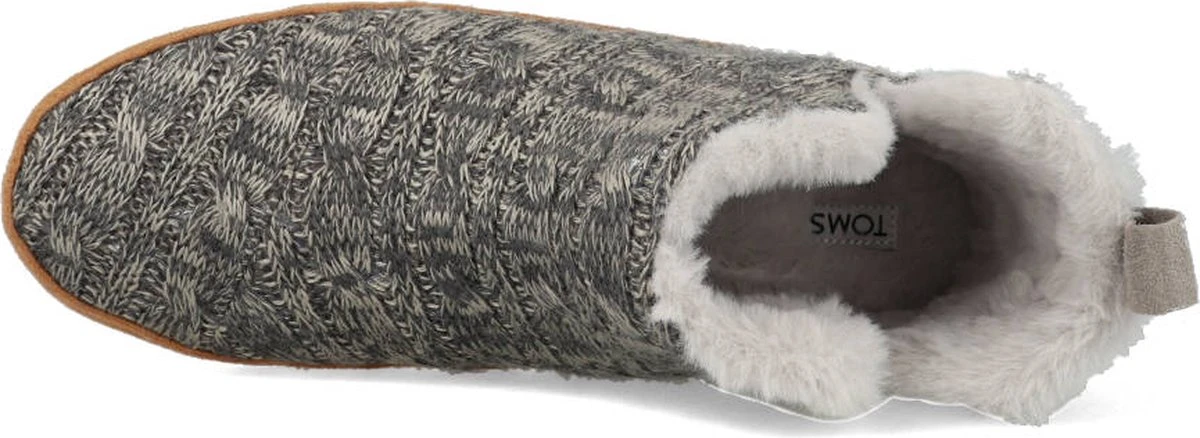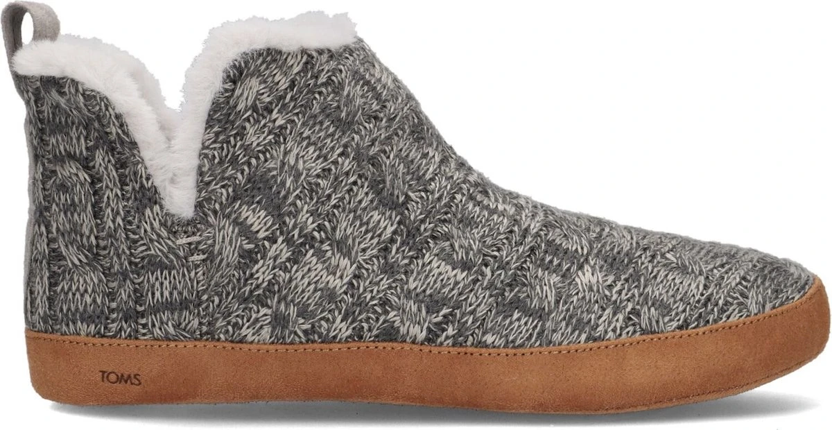 Nooit meer koude voeten met deze heerlijke pantoffels Lola van het merk Toms. Dit gemêleerde grijze model is gemaakt van gebreide stof en heeft een voering van zacht imitatiebont. Deze pantoffels hebben een bruine zool gemaakt van zacht textiel. Een leuk detail is de grijze, suèdelook aantreklus en het merkreliëf aan de zijkant. Perfect tijdens de koude winterdagen en een leuk cadeau om te geven!