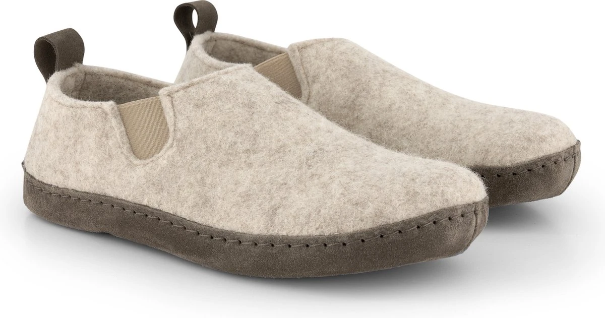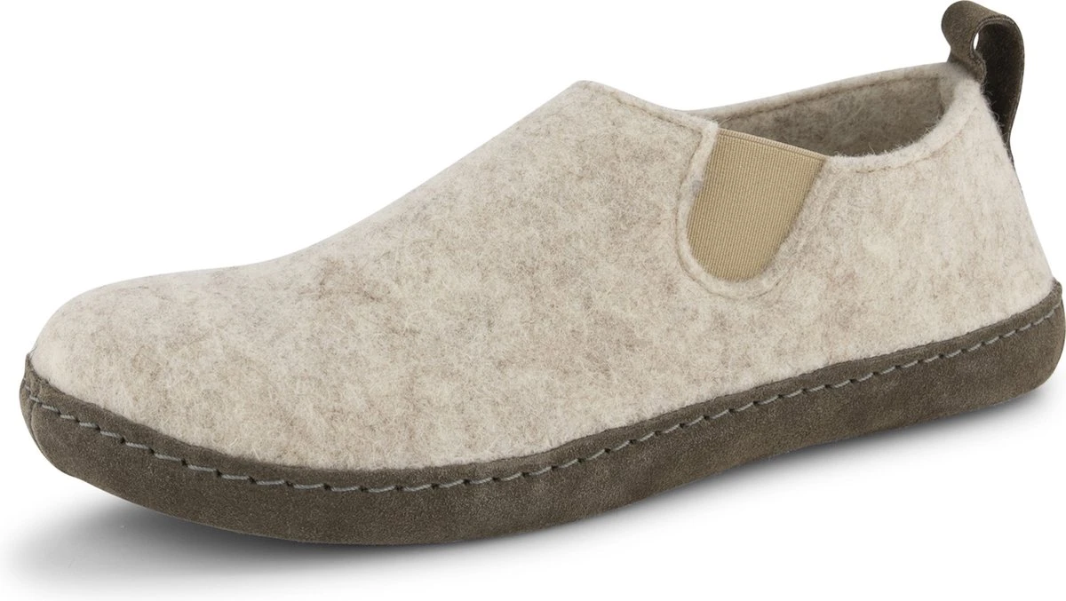 Travelin’ In-Home Dames Sloffen – Wollen Pantoffels – Instappers Met Suède Zool – Zand Beige – Maat 43