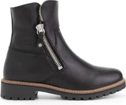 Deze enkelhoge laars van Travelin’ heeft een schuine functionele rits aan de zijkant. De leren laars is volledig wol gevoerd en heeft net als alle laarzen van Travelin’ een uitneembare inlegzool met een toplaag van wol. De rubberen zool met grof profiel zorgt voor extra grip en stabiliteit.