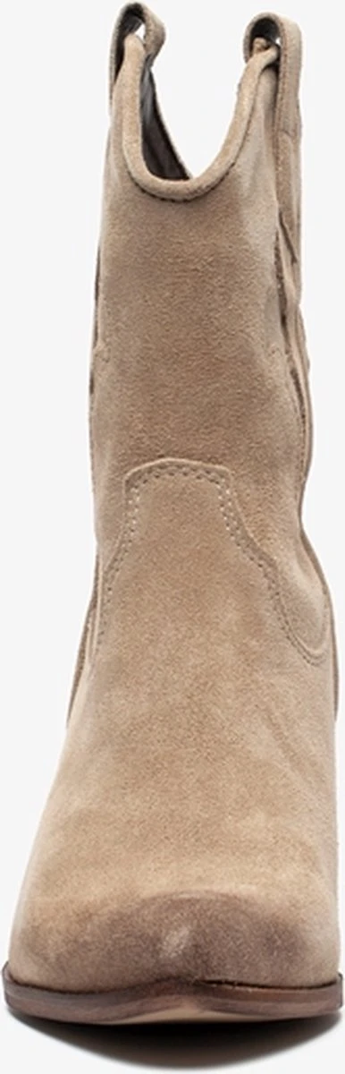 TwoDay Suede Dames Cowboy Western Laarsjes – Beige – Maat 40 – Echt Leer