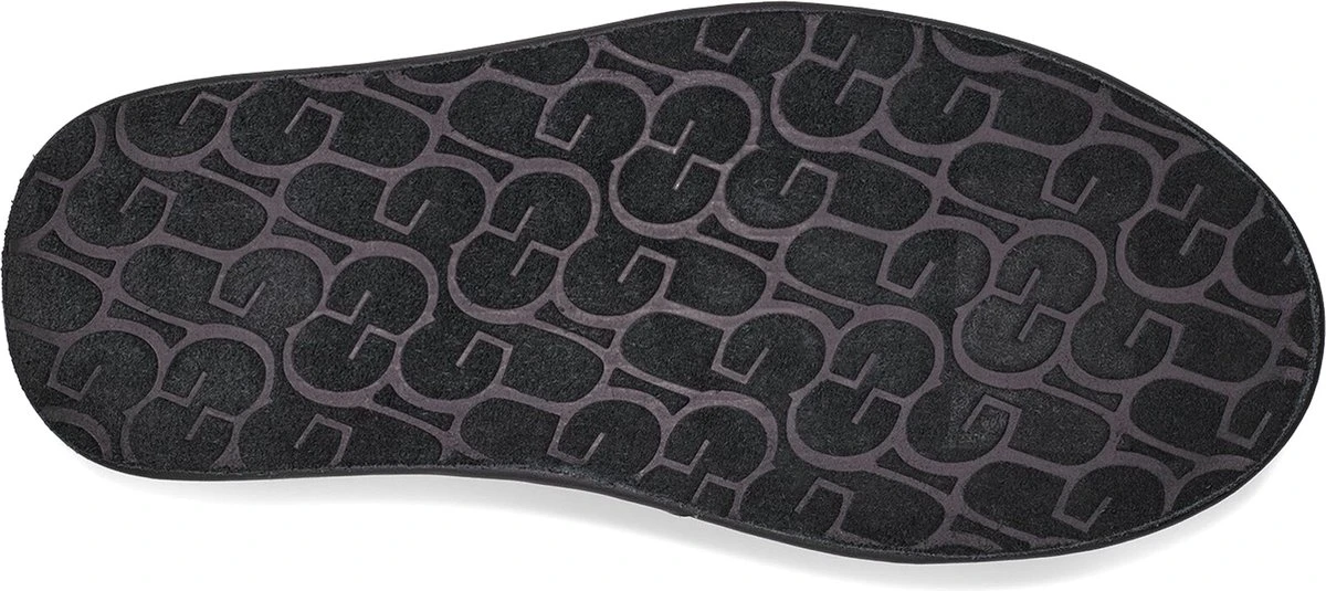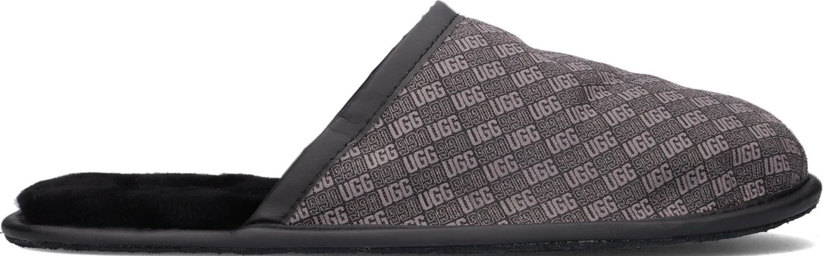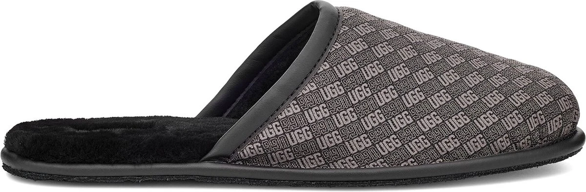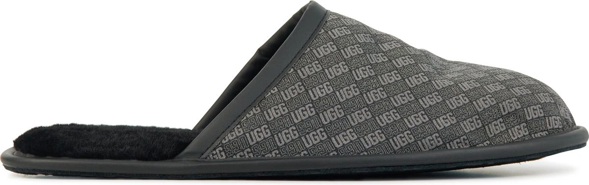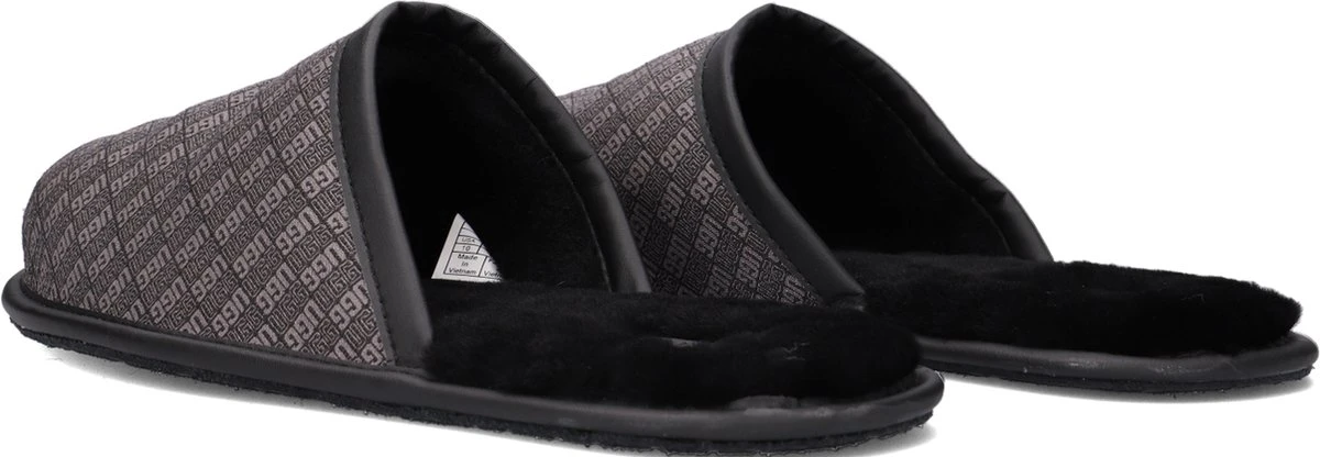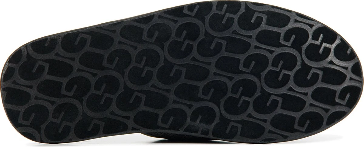 Pantoffel met logo en vacht voor dames van het merk UGG Australia. Deze zwarte instapper is uitgevoerd in canvas en bedrukt met het merklogo. De binnenzijde is geheel uitgevoerd in vacht. De rubberen loopzool heeft een medium profiel voor stevige grip.