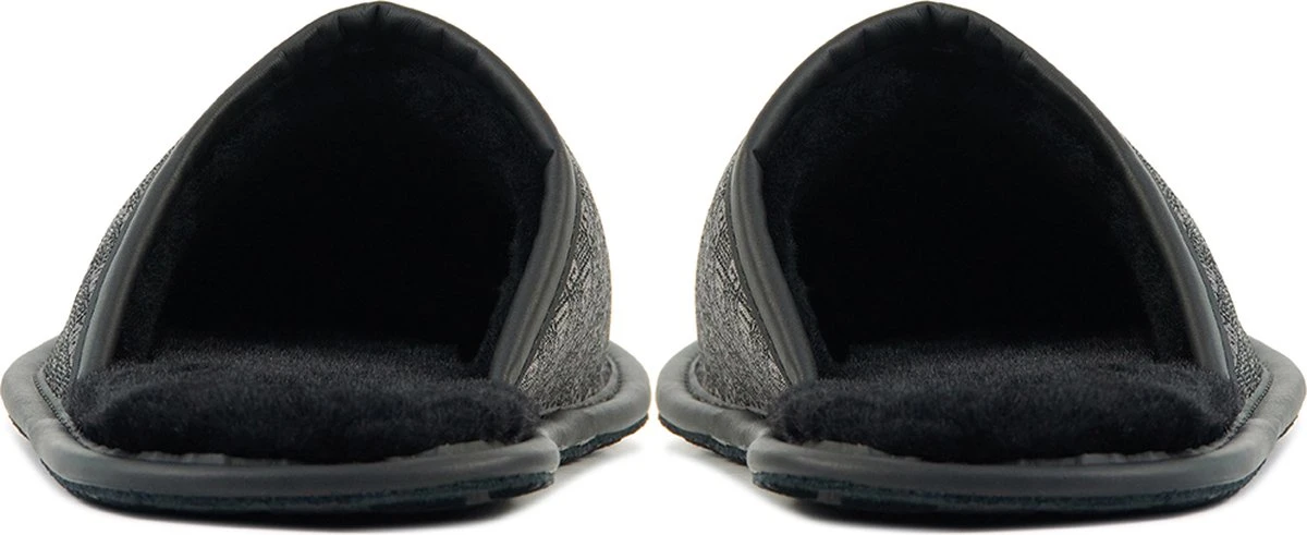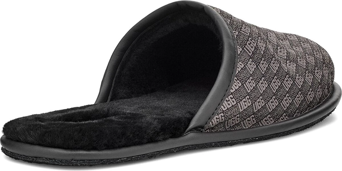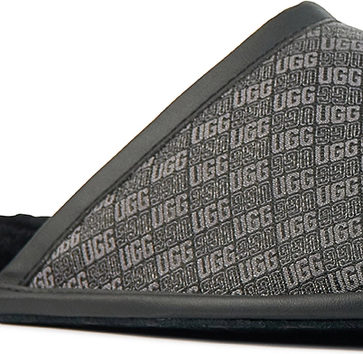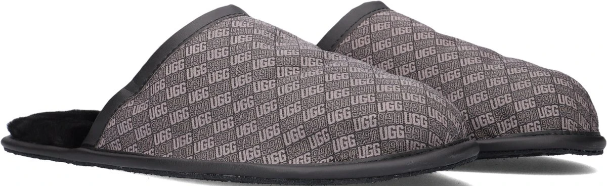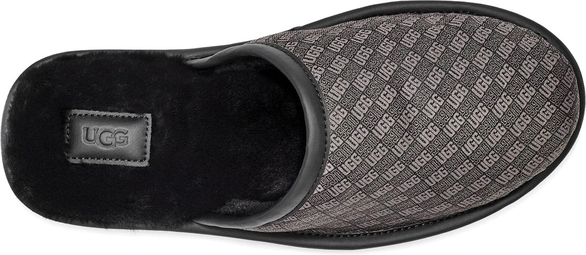 Pantoffel met logo en vacht voor dames van het merk UGG Australia. Deze zwarte instapper is uitgevoerd in canvas en bedrukt met het merklogo. De binnenzijde is geheel uitgevoerd in vacht. De rubberen loopzool heeft een medium profiel voor stevige grip.