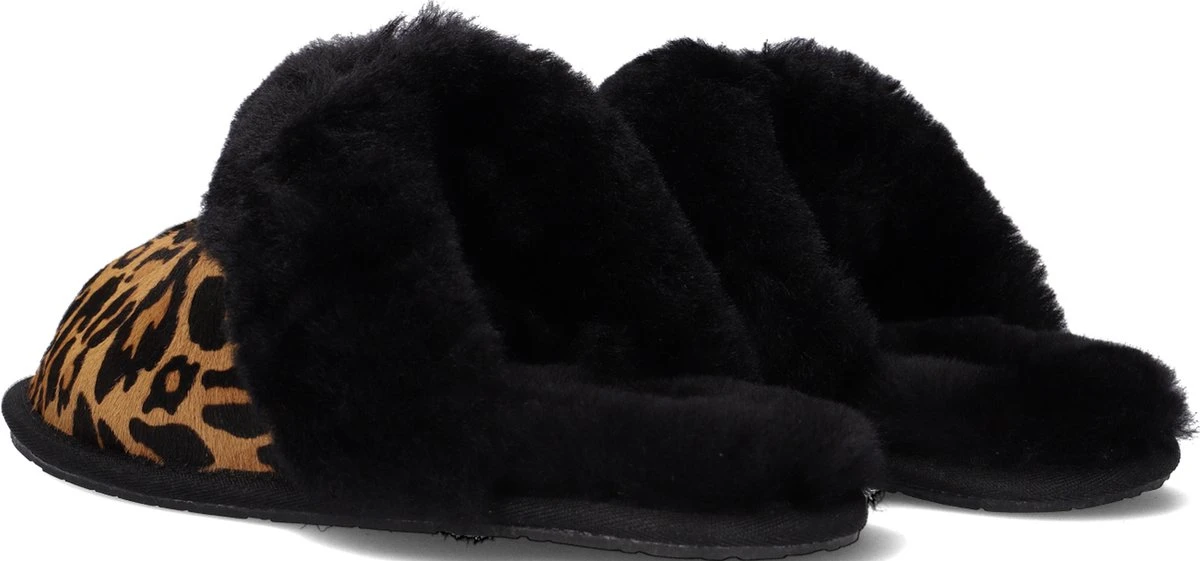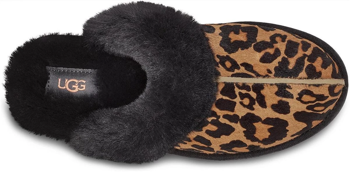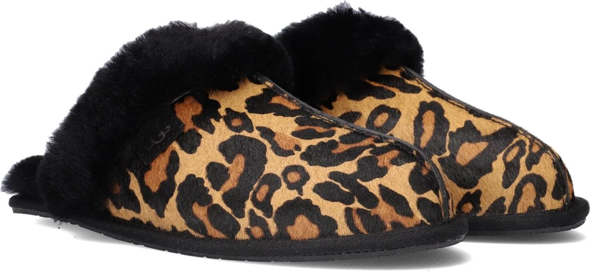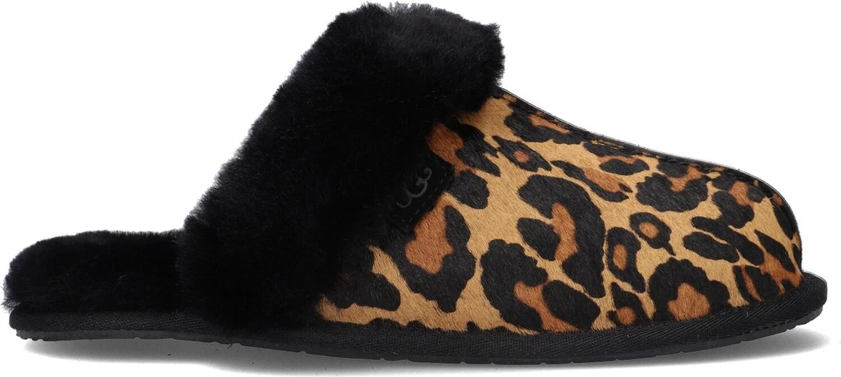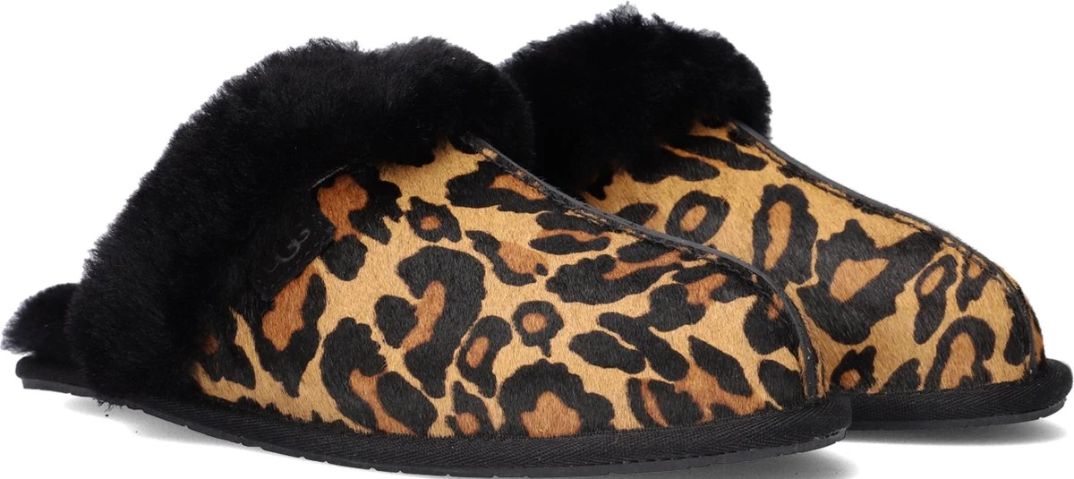 Met dit camelkleurige model W Scuffette II van het merk UGG heb je de ultieme huispantoffel gevonden! Hij is zacht en veelzijdig en je draagt ‘m zomer en winter door doordat hij in de winter verwarmt en in de zomer verkoelend werkt. Deze pantoffel is gemaakt van ponyhair met een toffe panterprint en heeft een opstaande bies over het voorpand en daarnaast een heerlijk zachte en warme sheepskin voering met dikke vachtrand. De zijkant is voorzien van een suède UGG®-merklabel en door de lichtgewicht buitenzool van gevormd rubber ervaar je maximaal comfort en grip. Deze veelzijdige pantoffels laten zich gemakkelijk met vrijwel alles combineren, maar het liefst draag je ‘m natuurlijk met een kasjmieren pyjama voor ultieme luxe. Dit product wordt gemaakt in Vietnam en bevat echte schaaps- of lamswol. De wol kan afkomstig zijn uit Australië, Ierland, het Verenigd Koninkrijk of de Verenigde Staten. De wol is kunstmatig gekleurd en behandeld.