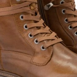 Travelin’ Erquy Dames Leren Enkellaarzen – Stoere Veterboots Met Rits – Cognac Bruin Leer – Maat 37