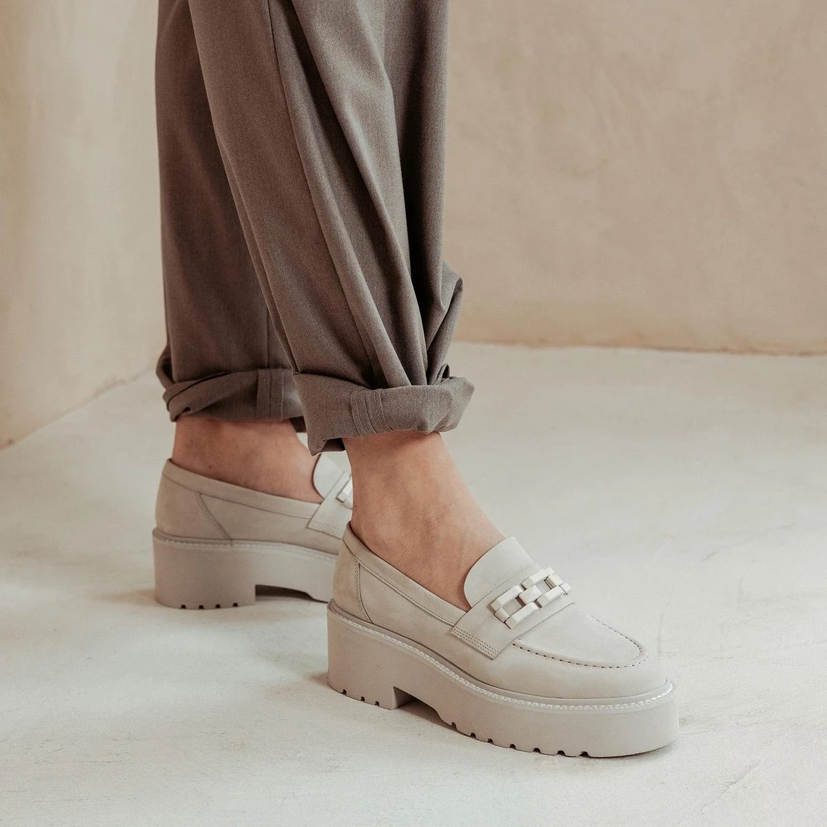How to style? Met de Lois Brake aan jouw voeten staat er altijd een fashionschijnwerper op je. Deze beauties combineer je prachtig met een minimalistische outfit. Denk bijvoorbeeld aan een mooie donkere jeans, een zwart t-shirt met hoge ronde hals en een zwarte boyfriend blazer. Ook met een nette pantalon kun jij de dag aan. Als je in jouw comfy costume bivakkeert en toch even de deur uit moet, dan trek je deze beige loafers makkelijker uit de kast dan jouw sneakers. Deze combinatie is namelijk een échte najaarstrend.